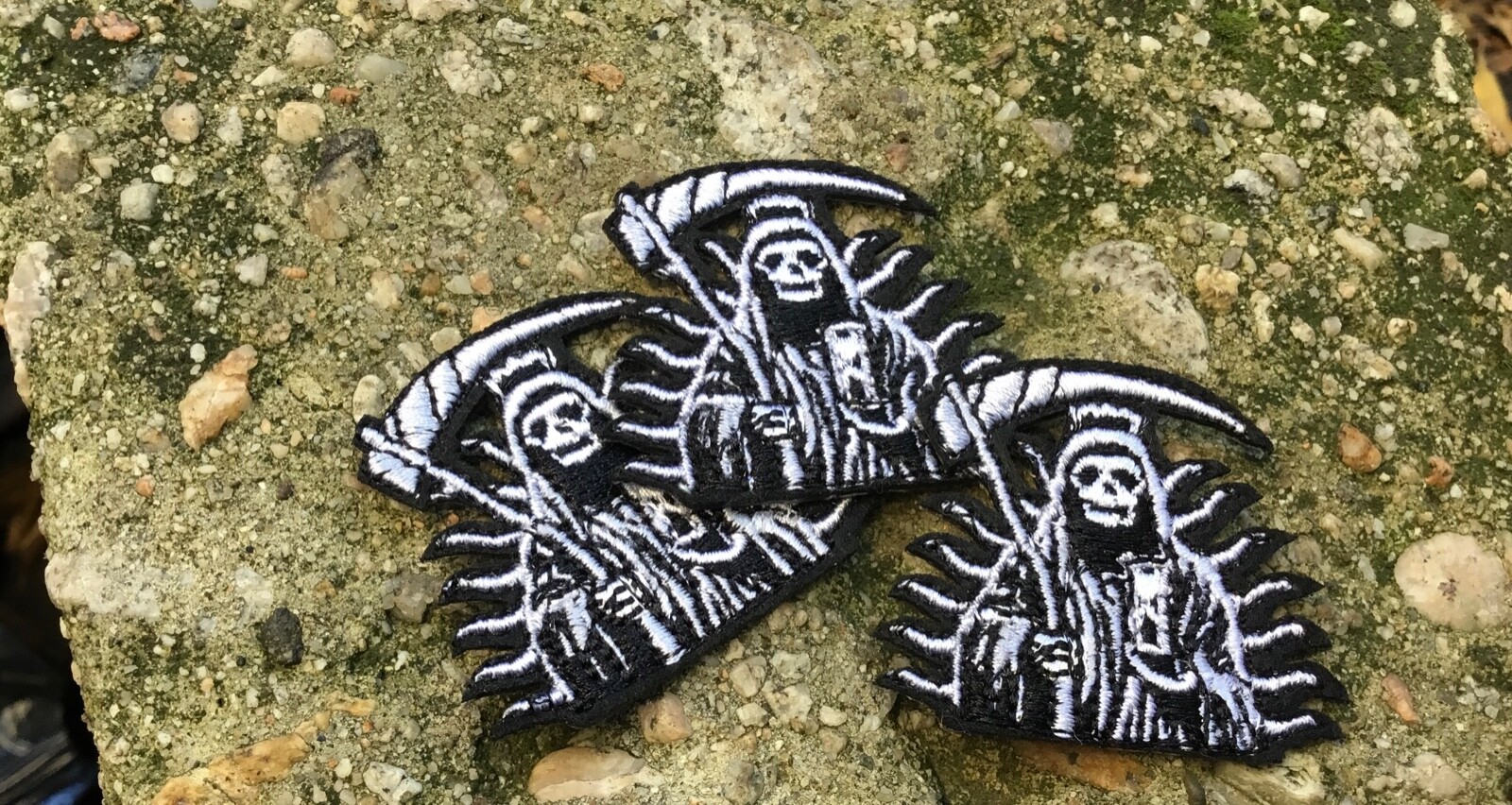 • SEW-ON EMBROIDERED PATCH grim reaper skull hat shirt vest Santa Muerte calavera