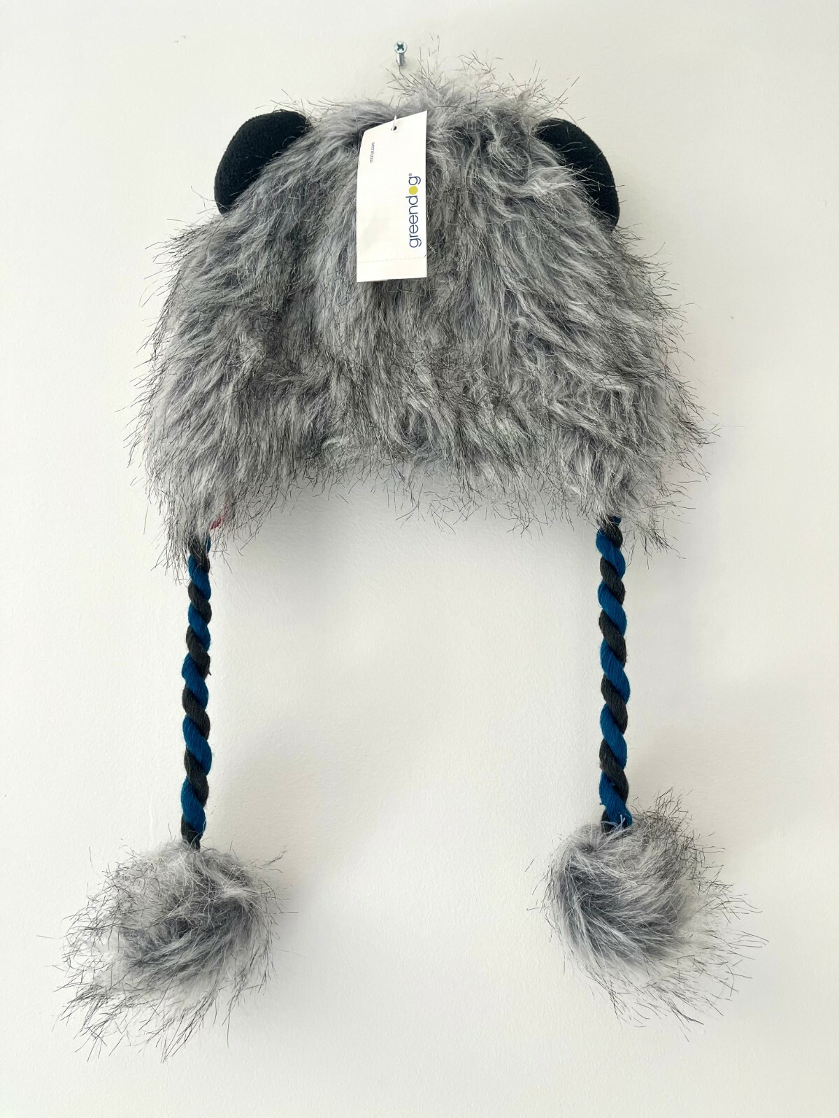 как выглядит Greendog Faux Fur Winter Monkey Hat BRAIDED EAR FLAPS Pompoms Grey White M-L фото