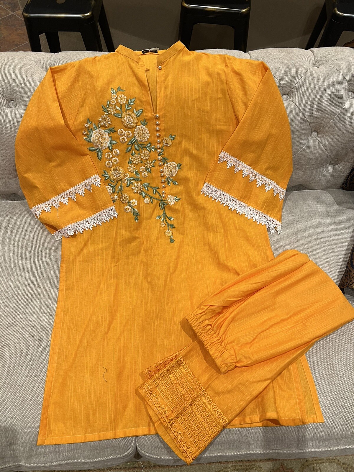 2pc NWT Agha Noor Pakistani/Indian Fancy Yellow Sold Out Online Large