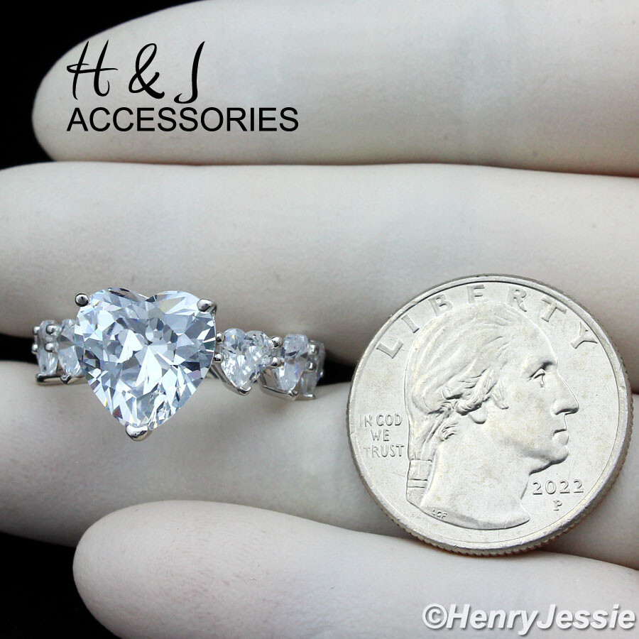 WOMEN 925 STERLING SILVER BLING CZ SILVER FULL HEART SHAPE ENGAGEMENT RING SR149