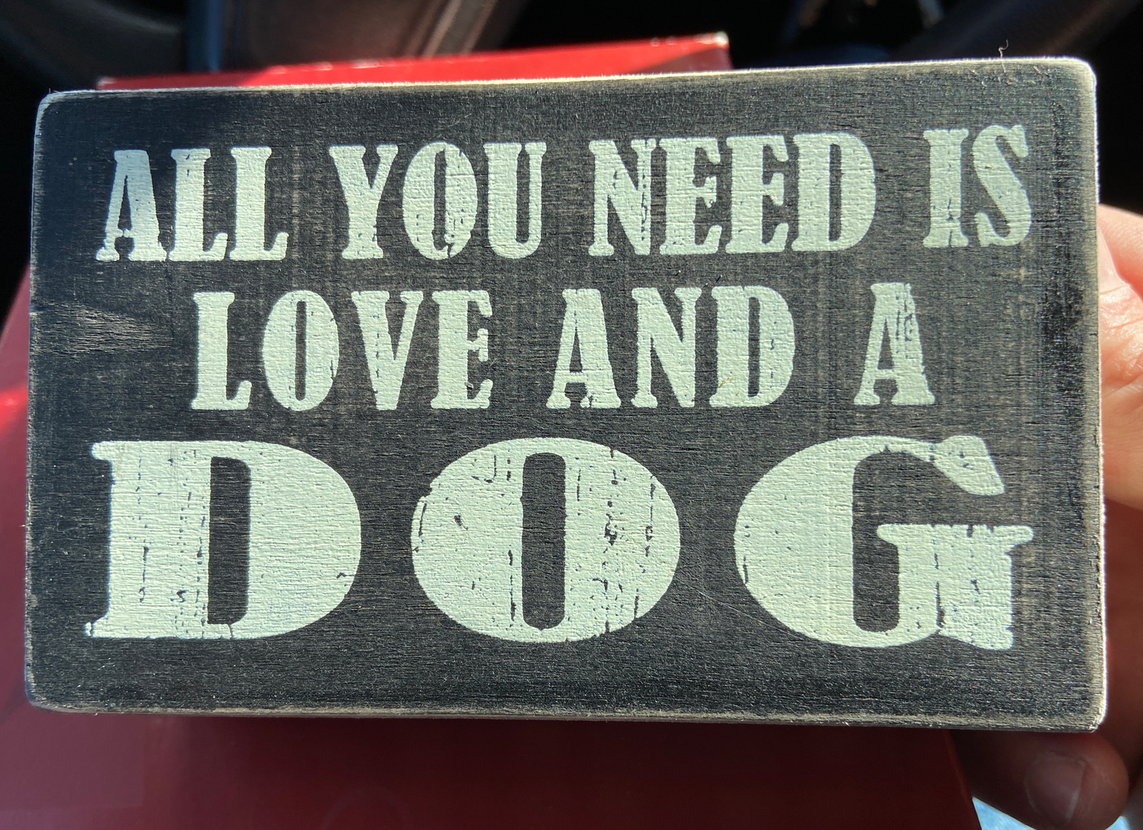ALL YOU NEED IS LOVE AND S DOG WOODEN SIGN APPROX 2.5 by 4 COUNTRY FARM LOOK