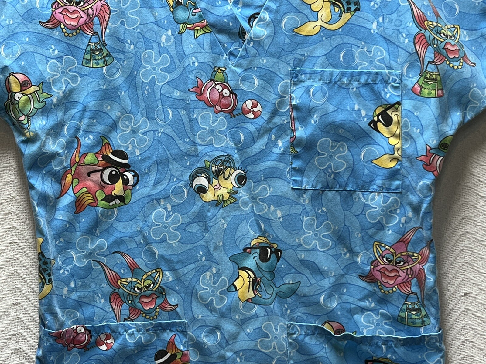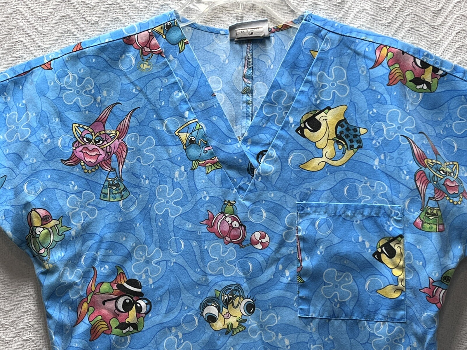 как выглядит SB scrubs Blue Fish Patterned Size Small Scrub Top фото