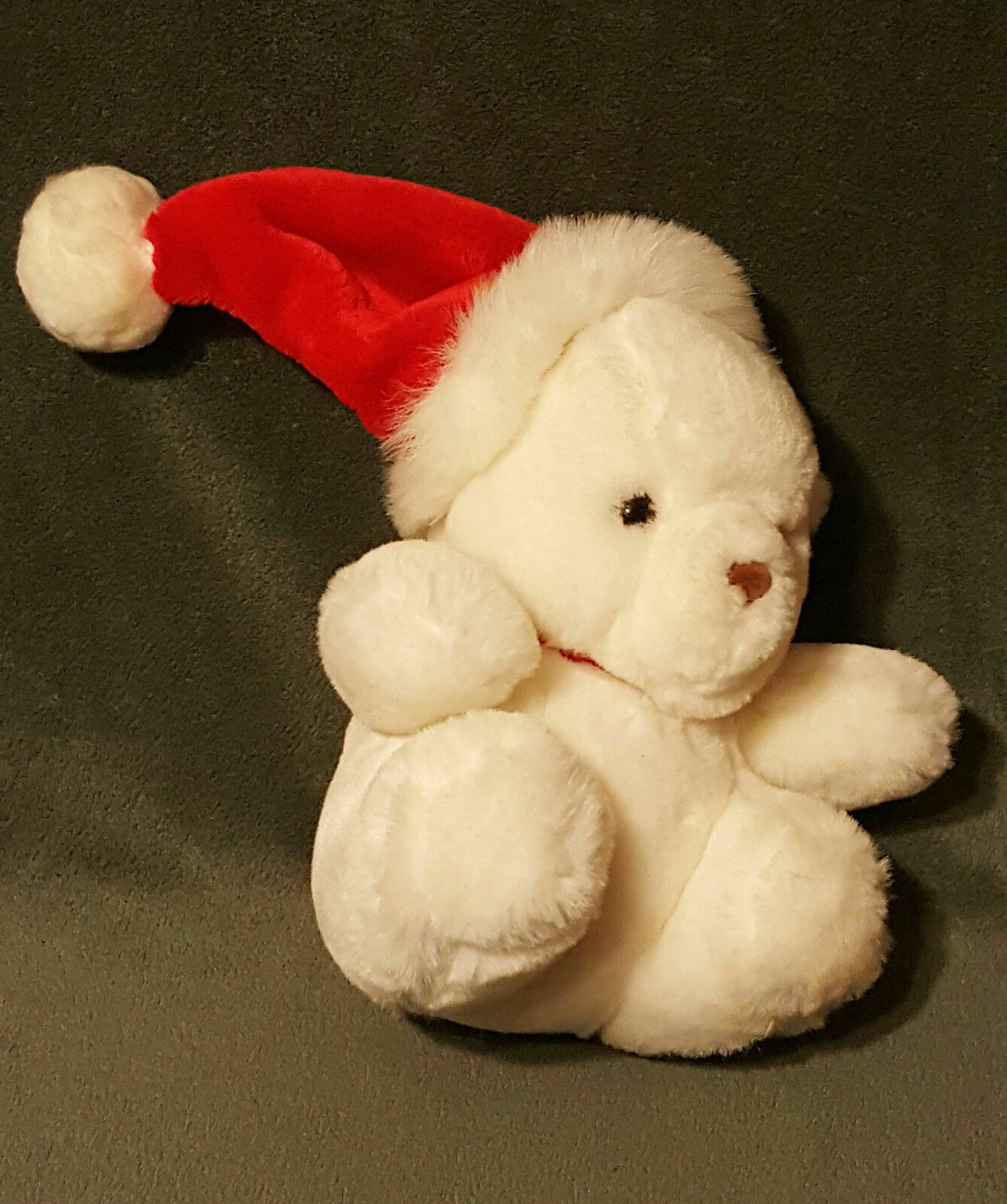 Vintage 9 EDEN White Plush HOLIDAY Christmas Bear w/ Santa Hat / Red Bow EUC