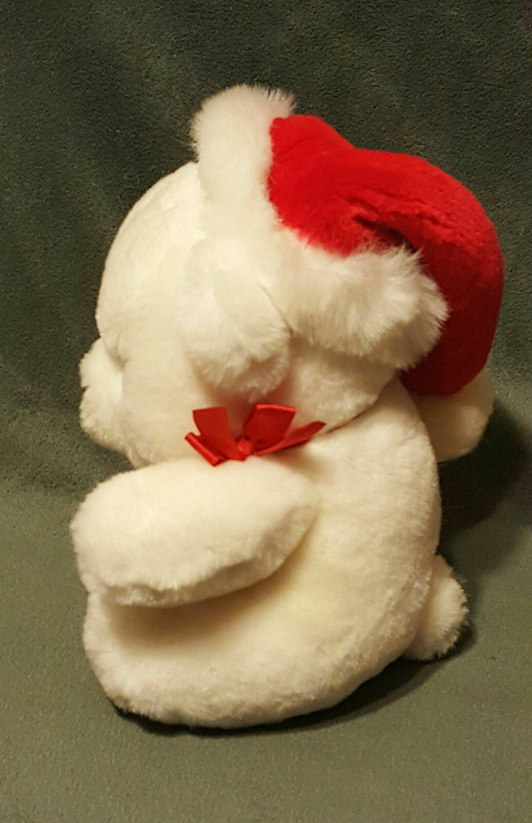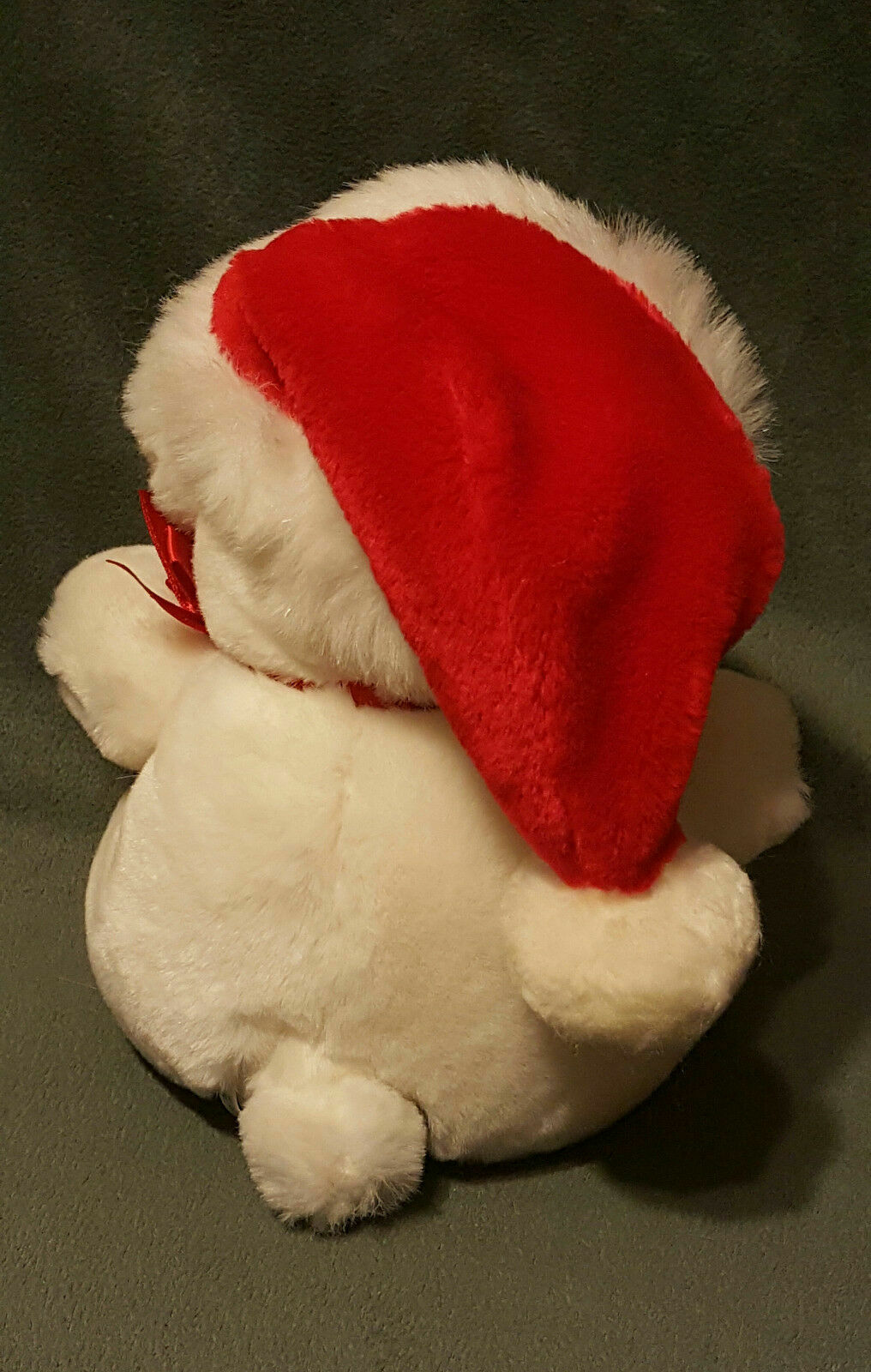 как выглядит Vintage 9" EDEN White Plush HOLIDAY Christmas Bear w/ Santa Hat / Red Bow EUC фото
