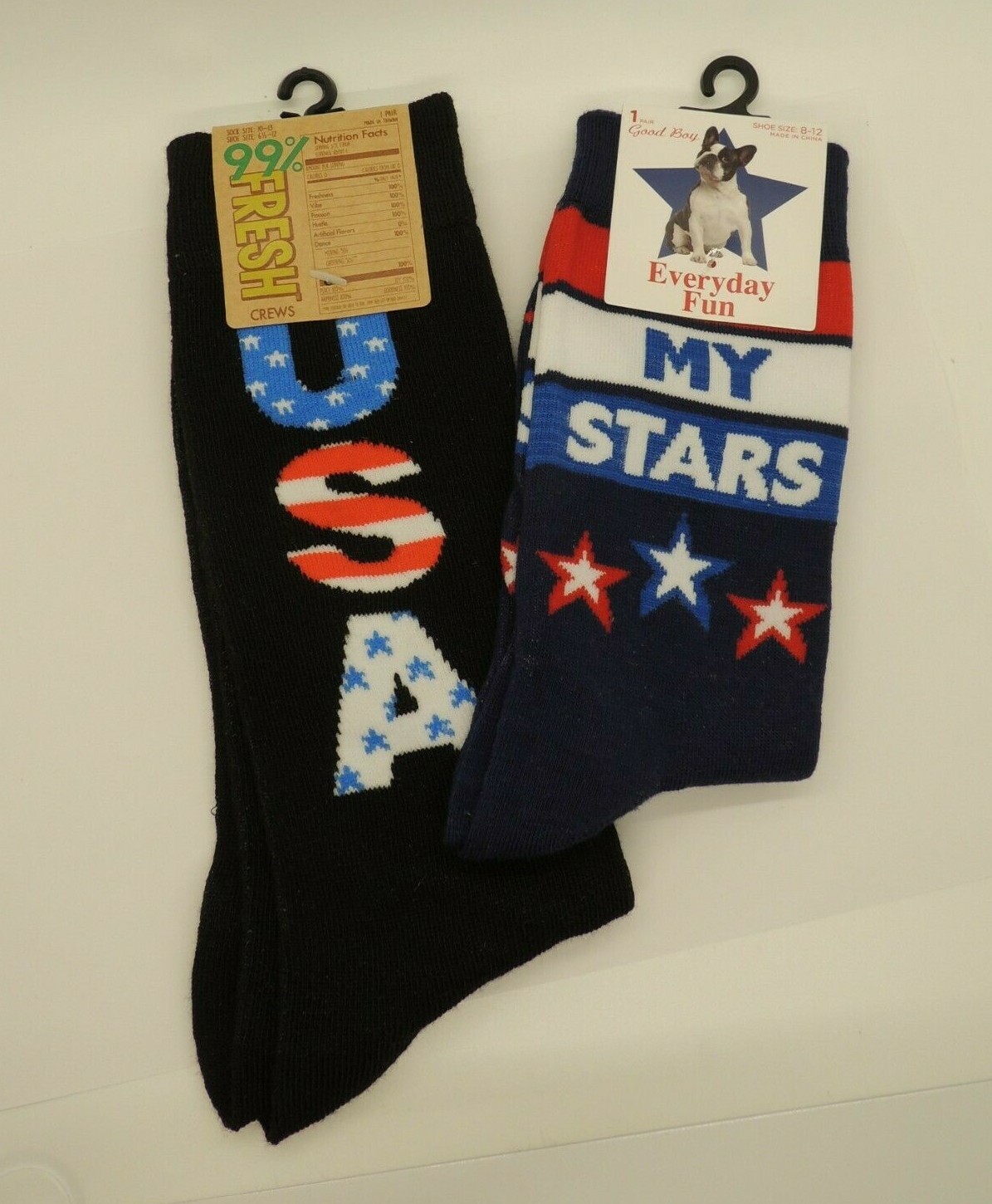 Lot of 2 Patriotic Socks Unisex Red White Blue USA Oh My Stars NEW Stars Stripes