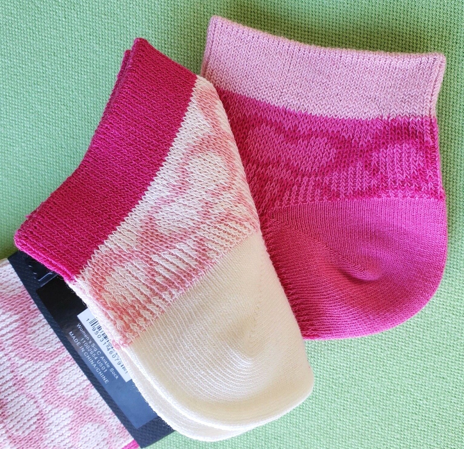 как выглядит COACH SIGNATURE ANKLE LENGTH SOCKS PAIR :NWT PINK/CHALK C9136 фото