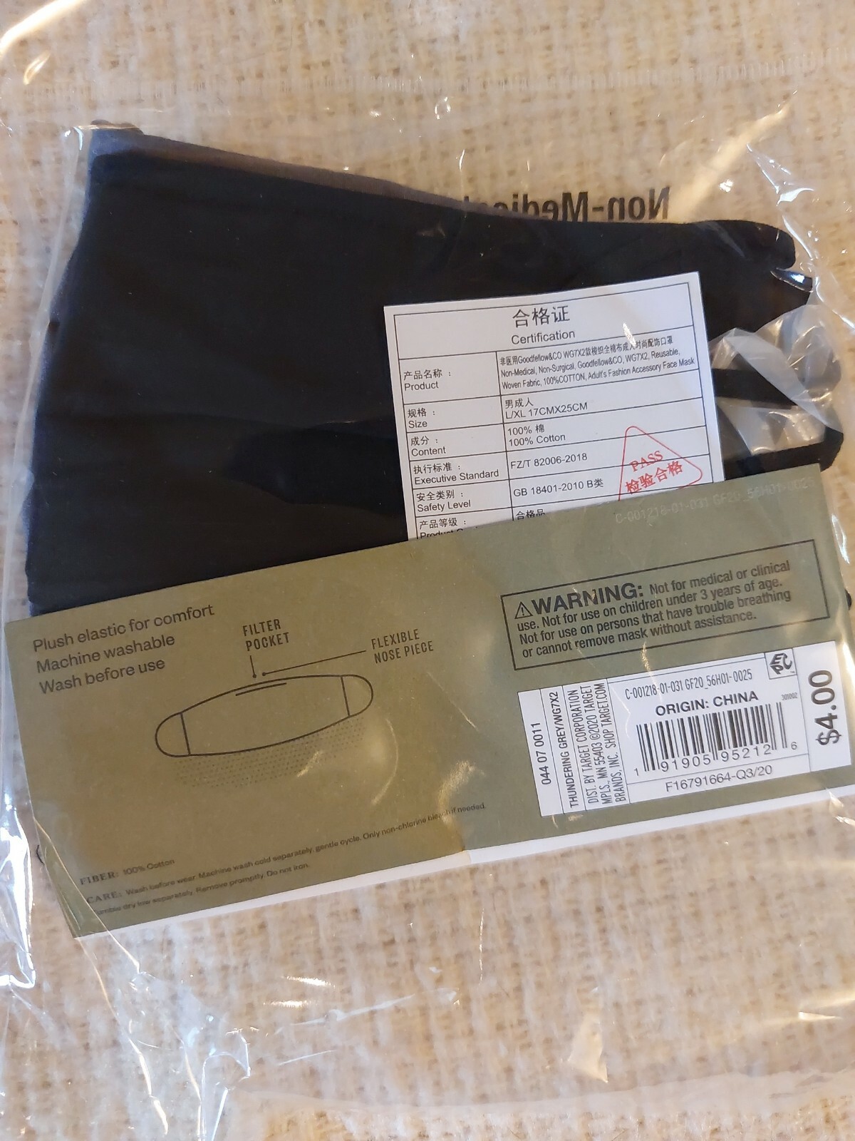 2 pcs Goodfellow Co Men's Fabric Face Masks Black Gray Size L / XL Brand New