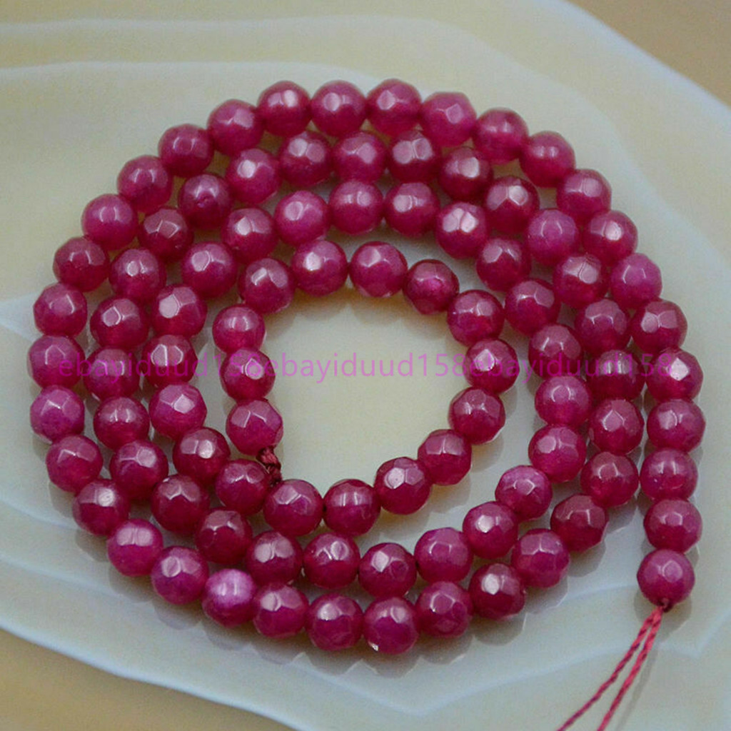 как выглядит Natural 6mm Faceted Rose Red Jade Gemstone Round Loose Beads 15