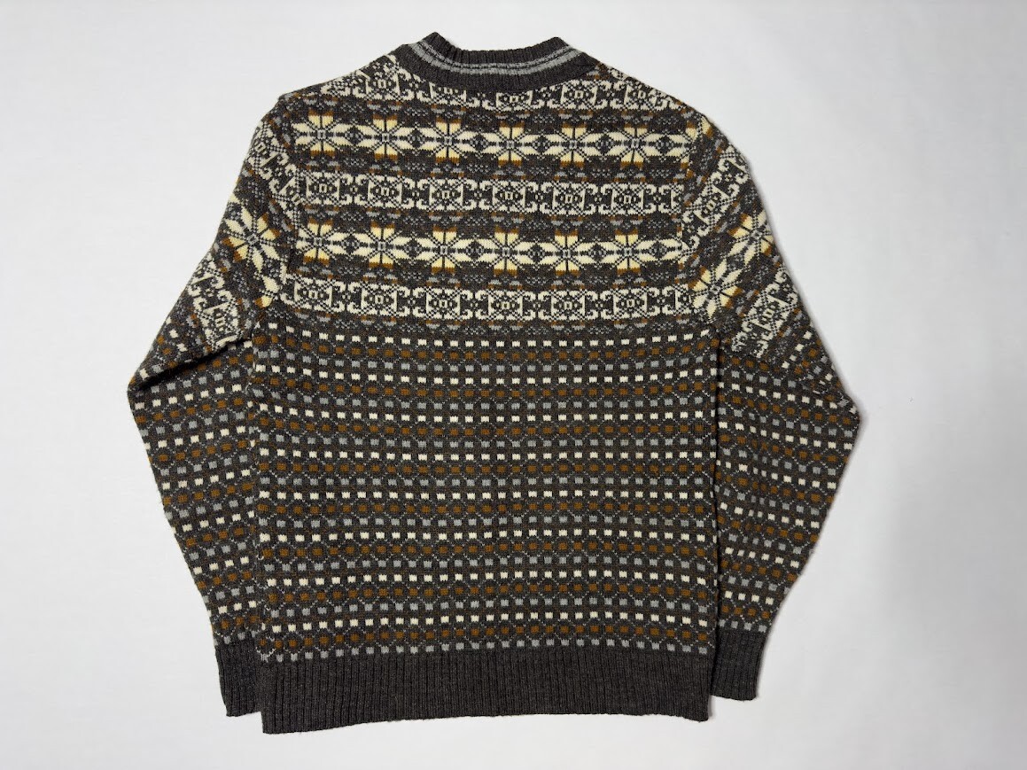 1970s Mens Grey Acrylic Fair Isle Sweater Size Large Vintage Pullover Jumper