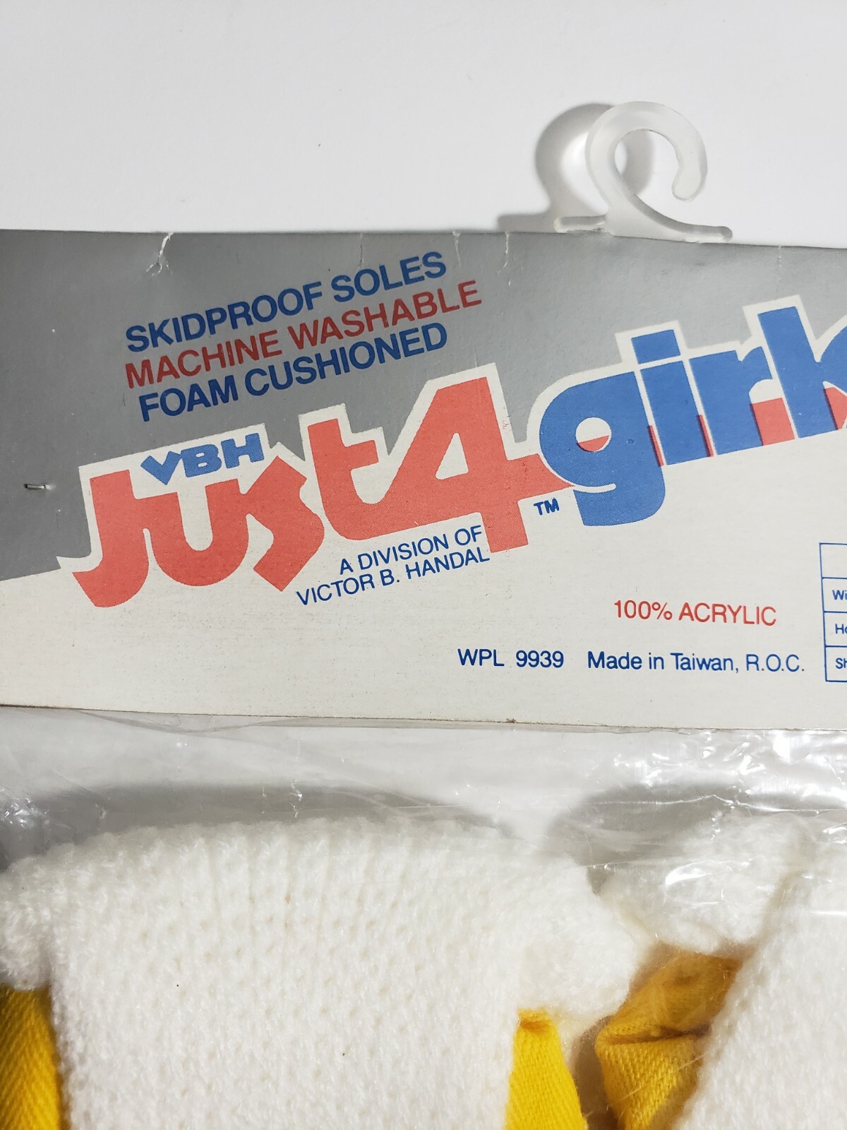 Vintage 1980's VBH Just4Kids Size MEDIUM Girls Crochet Style Slipper Socks NOS