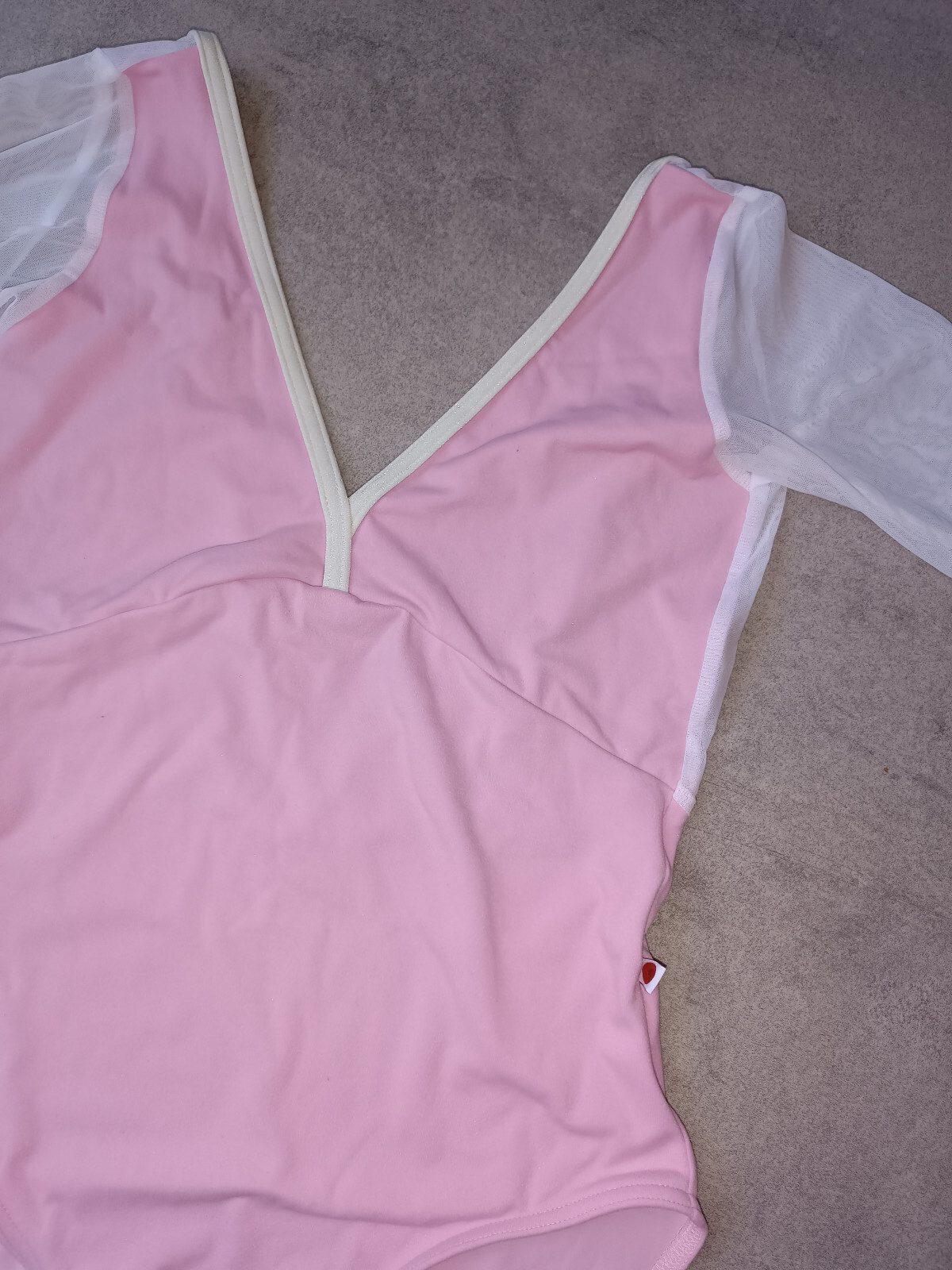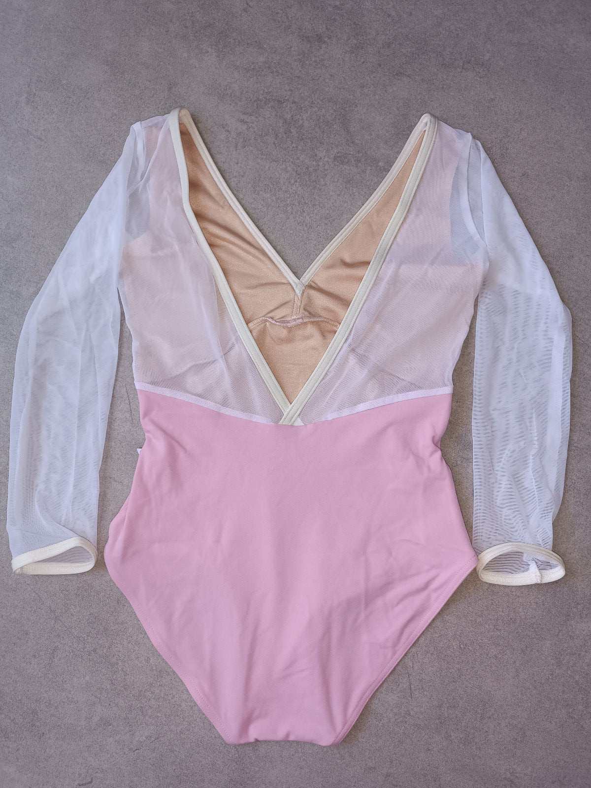 как выглядит NEW Yumiko leotard Alicia C-Candy N-Antique trim white mesh 3/4 sleeve size L фото