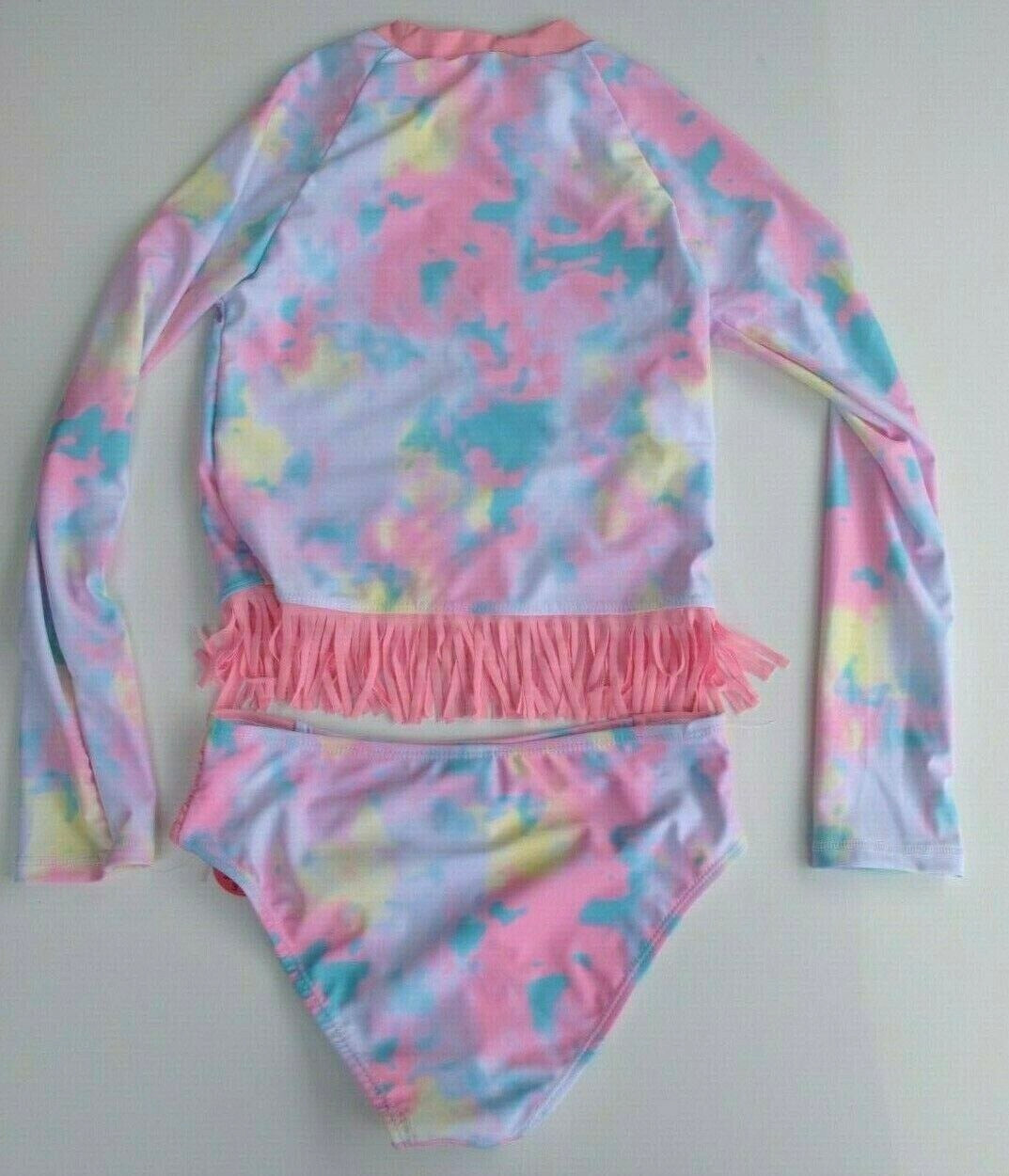 Betsey Johnson Girl's L 12 Long Sleeve 2 Pc Rash Guard Tankini Swimsuit Pink