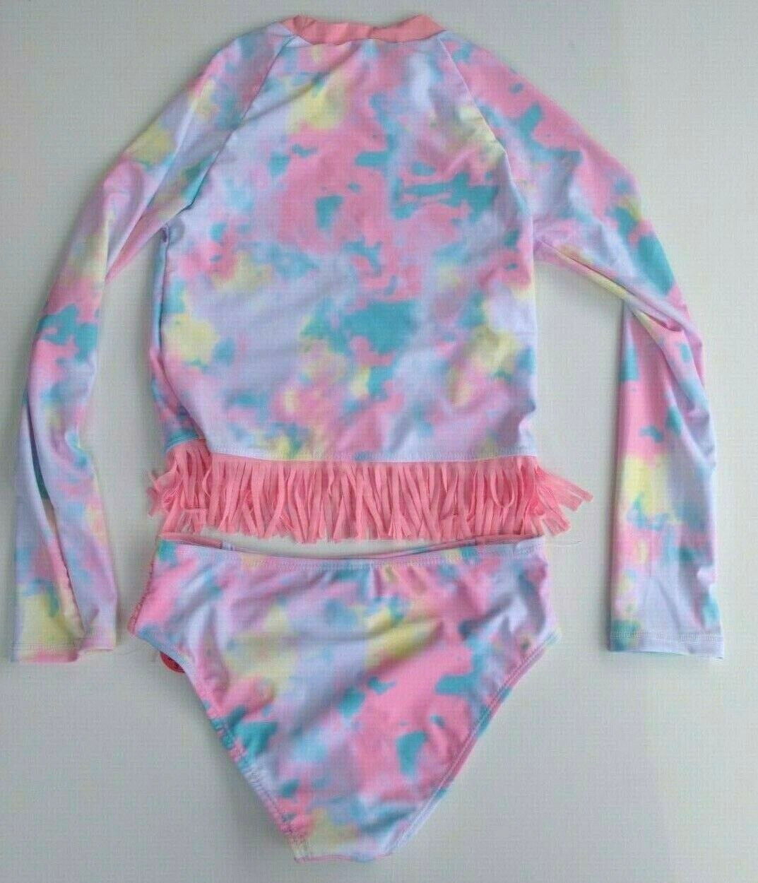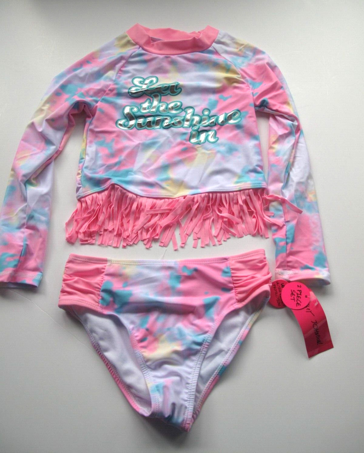Betsey Johnson Girl's M 10 Long Sleeve 2 Pc Rash Guard Tankini Swimsuit Pink