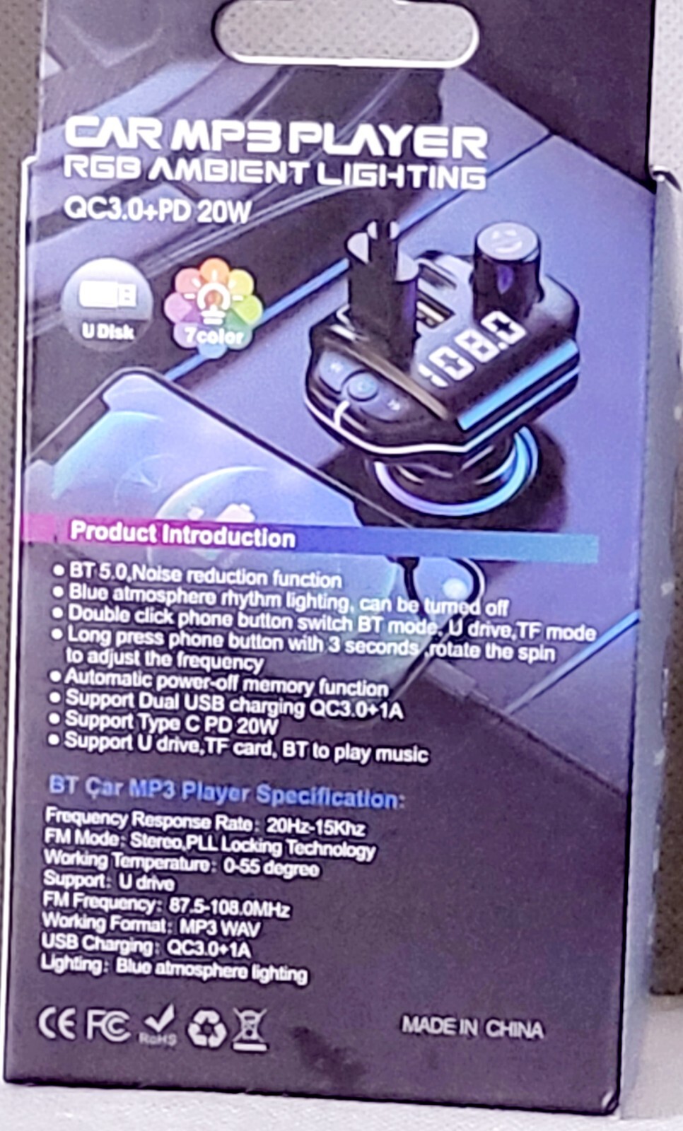 как выглядит bluetooth CAR M P3 PLAYER fm transmitter BEST QUALITY FAST CHARGING USB MUSIC фото