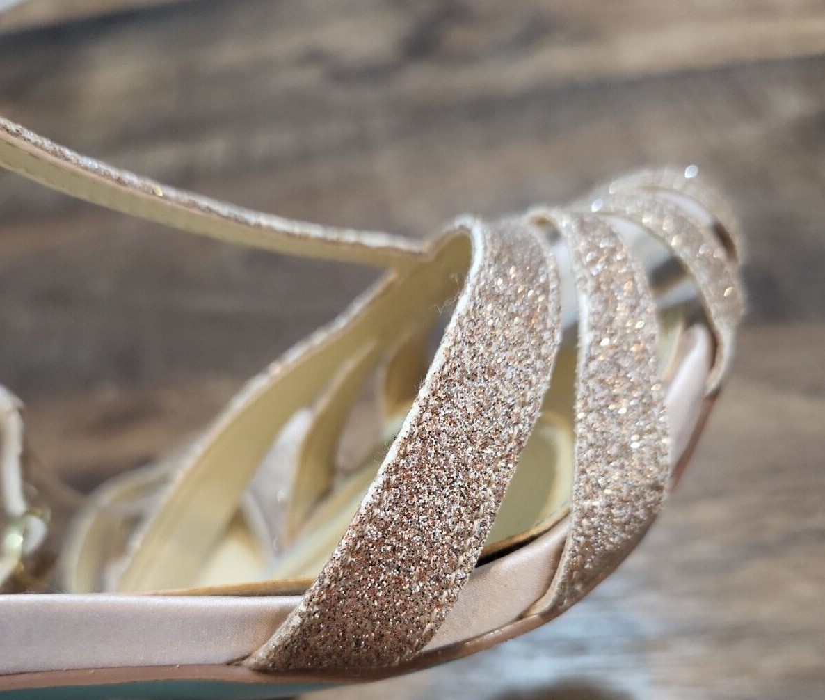 как выглядит Betsey Johnson SB-TEE Glitter Gold Peep Toe Dress Sandals Heels Pumps 10M фото