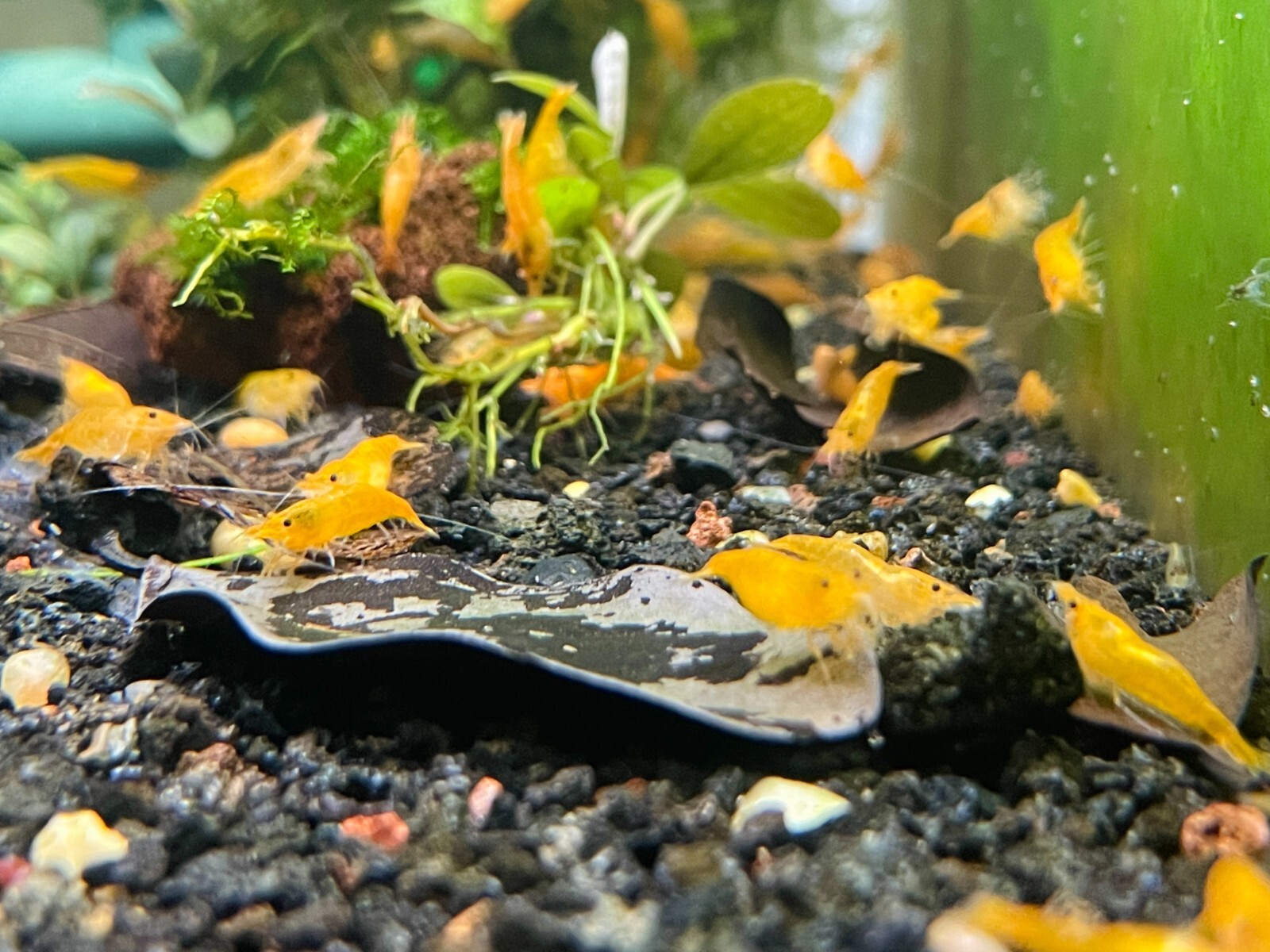 как выглядит 10 1 Orange Sunkist Shrimps Live Freshwater Shrimp Aquarium Neo Inverts RCS фото
