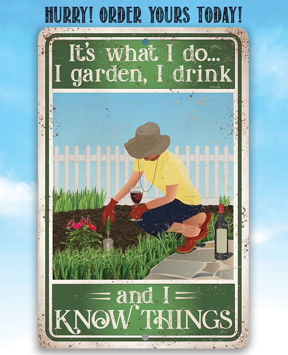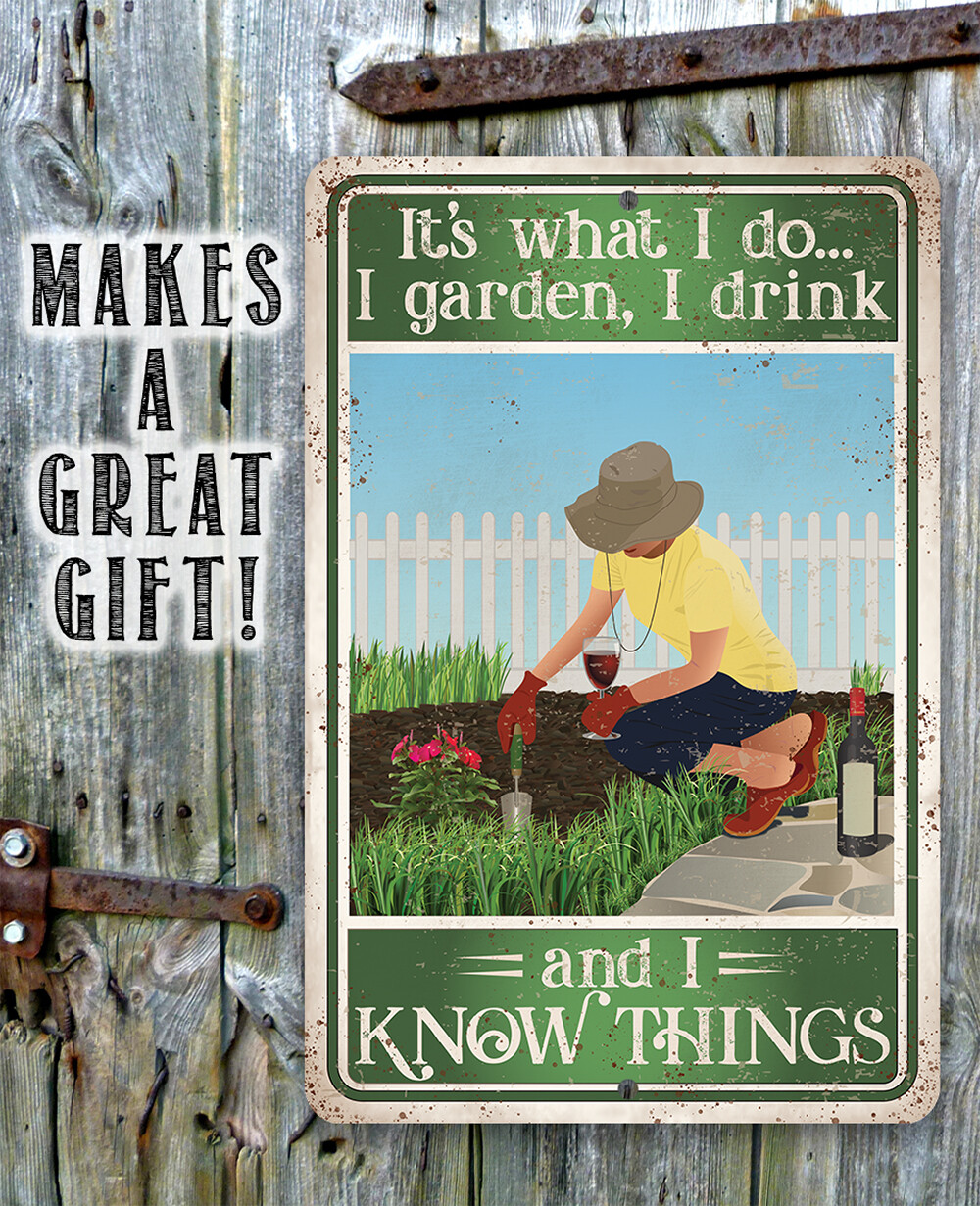 Metal Sign - It's What I Do, I Garden, I Drink And I Know Things - Greenhouse