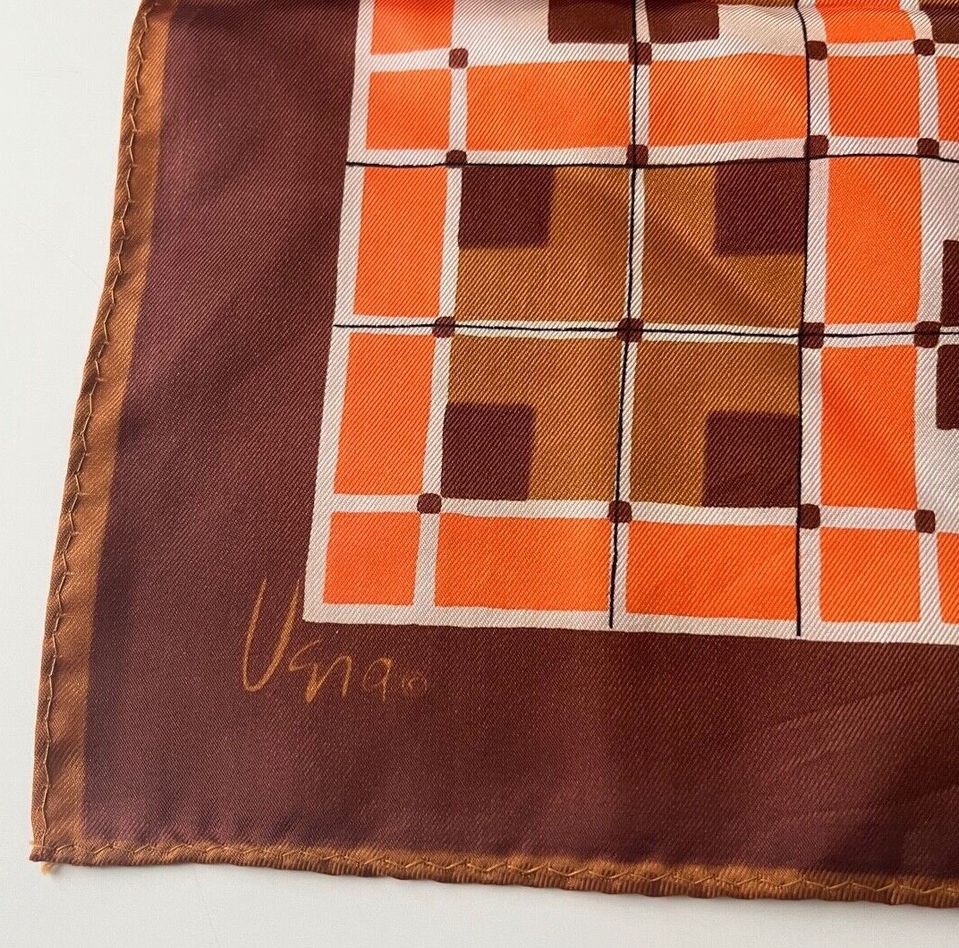 как выглядит Vintage VERA Neumann Orange Geometric Scarf 22" Square Abstract Mod Pop Art фото