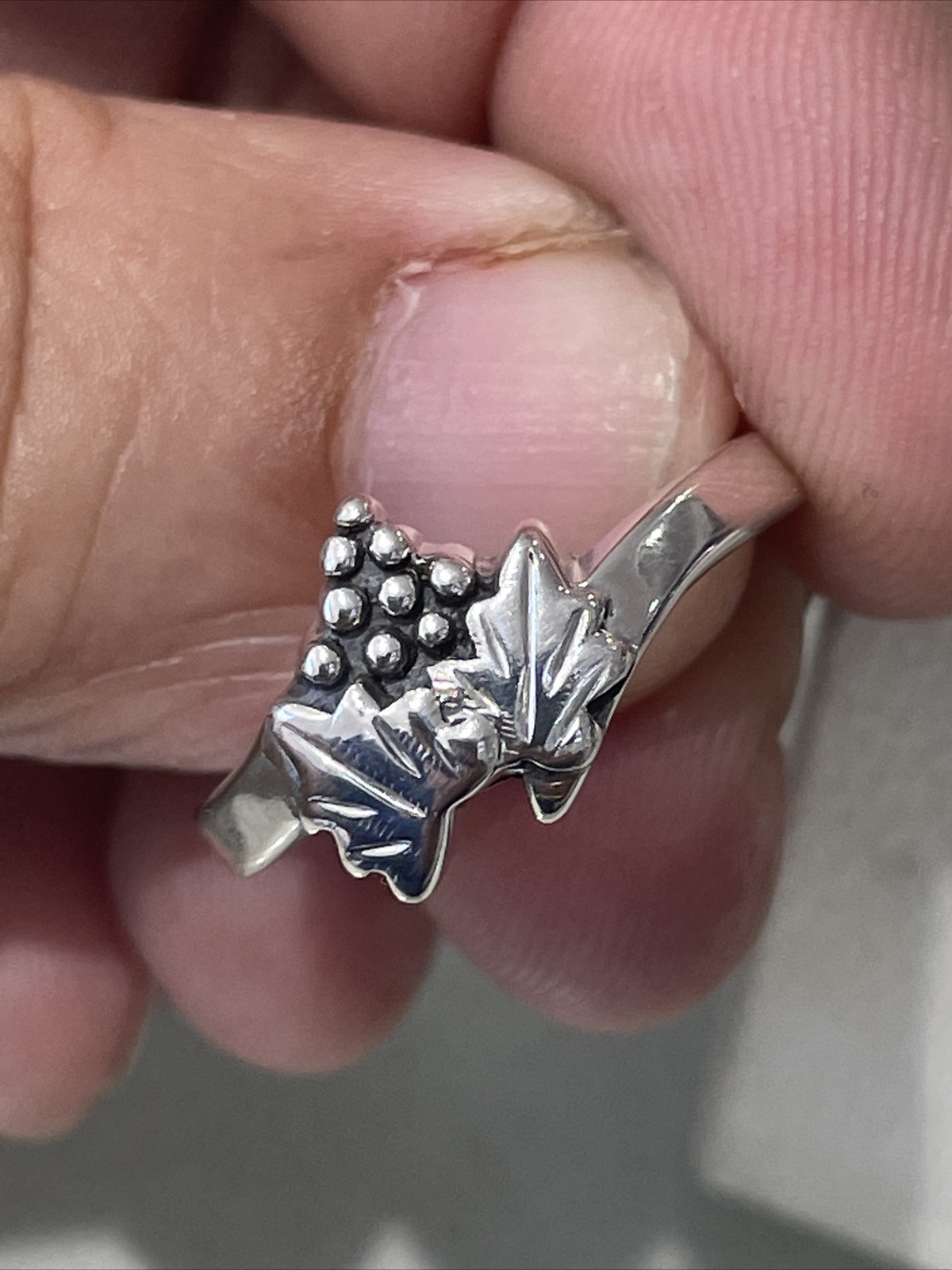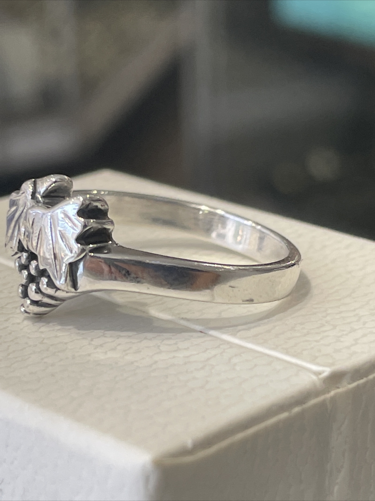как выглядит Vintage Wheeler Manufacturing WM Co Sterling Silver Leaf Band Ring - Size 8.5 фото