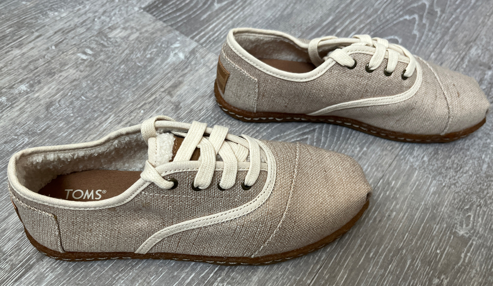 TOMS Cordones kids Youth Size 6 Metallic Beige With Wool Inside New condition