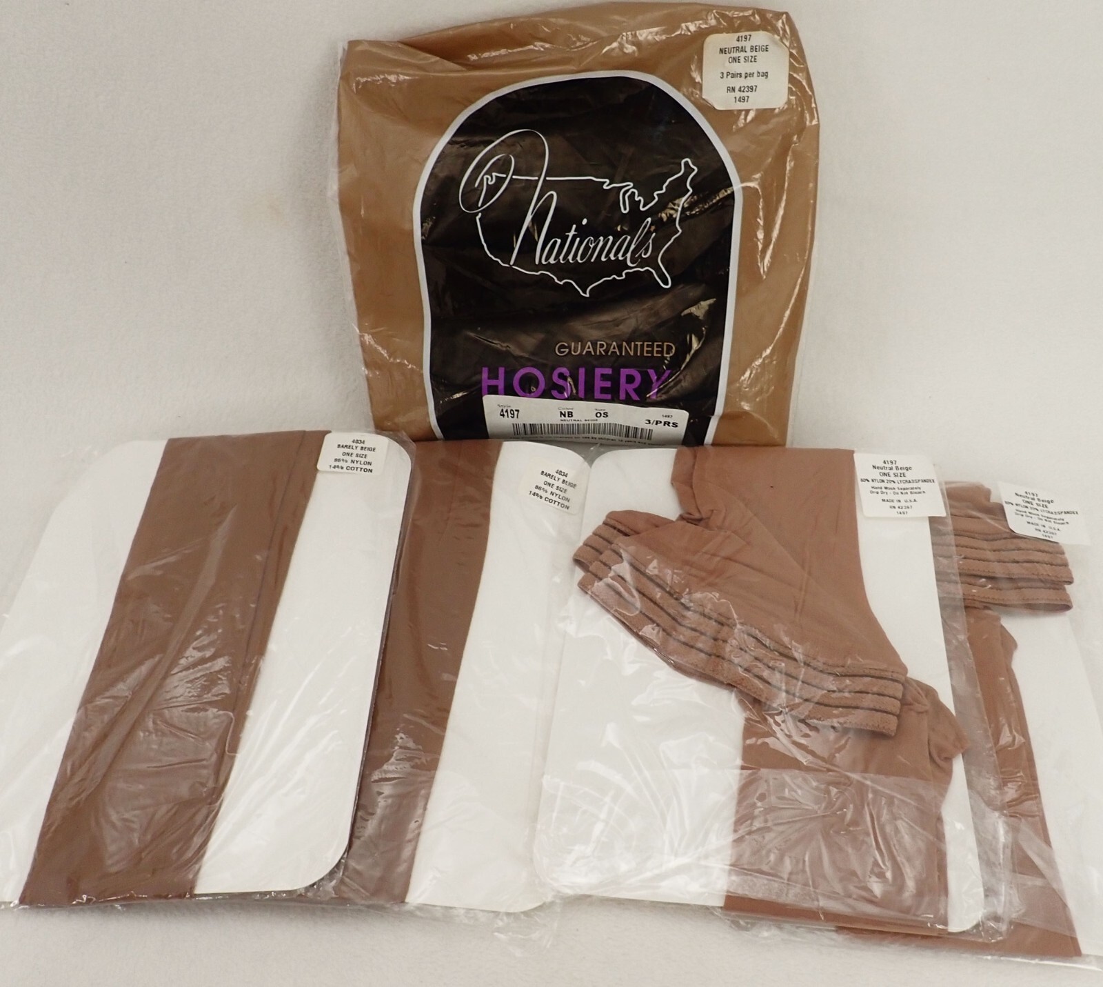 4 Pr VTG Nylon Stockings NATIONALS Hosiery OS Barely Beige Neutral Beige NOS