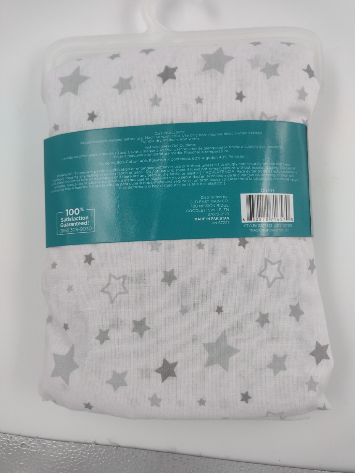 Crib Fitted Sheet White with Gray Stars New Gentle Steps Cotton Blend Brand New
