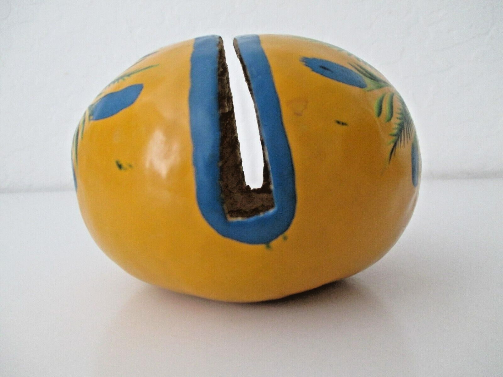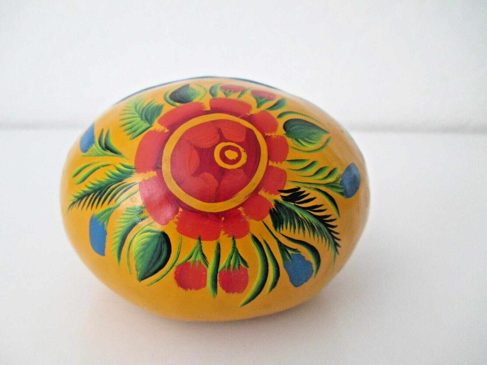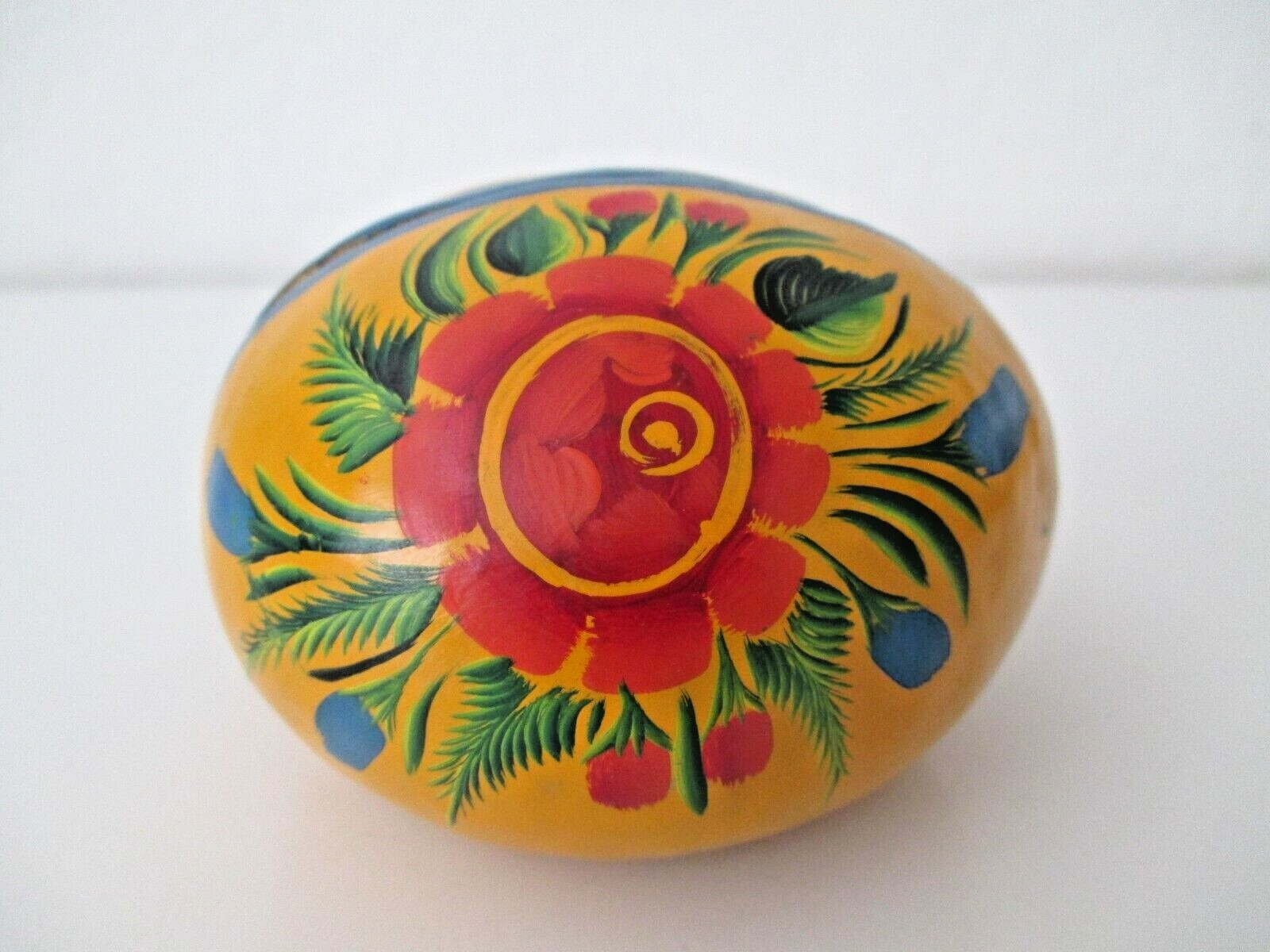 как выглядит Vtg Folk Art Handmade Hand Painted Orange Gourd Letter Holder Floral 4 3/4" AZ20 фото