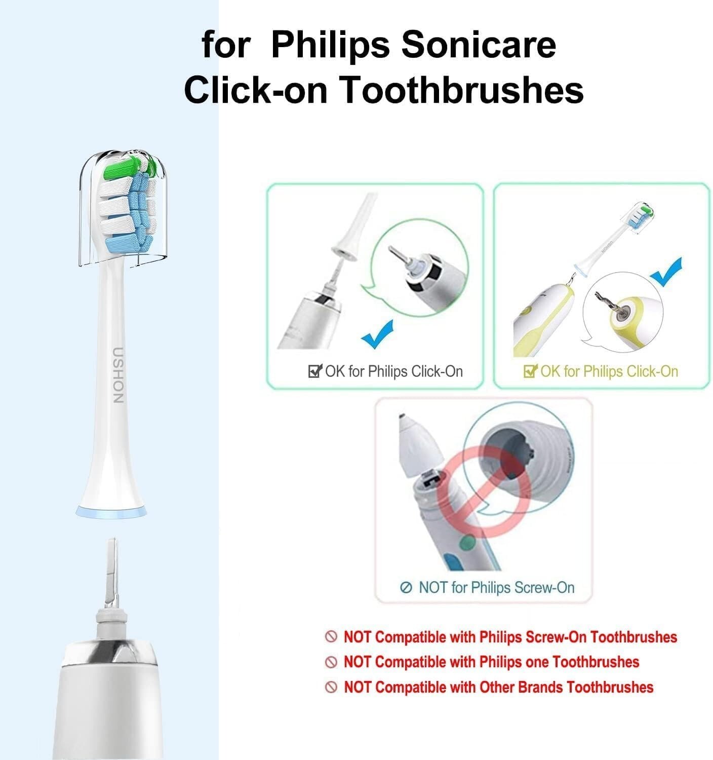Replacement Toothbrush Heads 10 Pack Compatible with Phillips Sonicare Snap-on