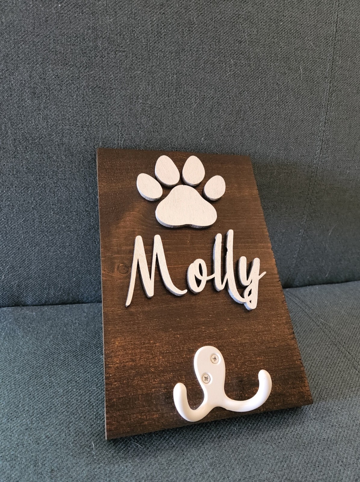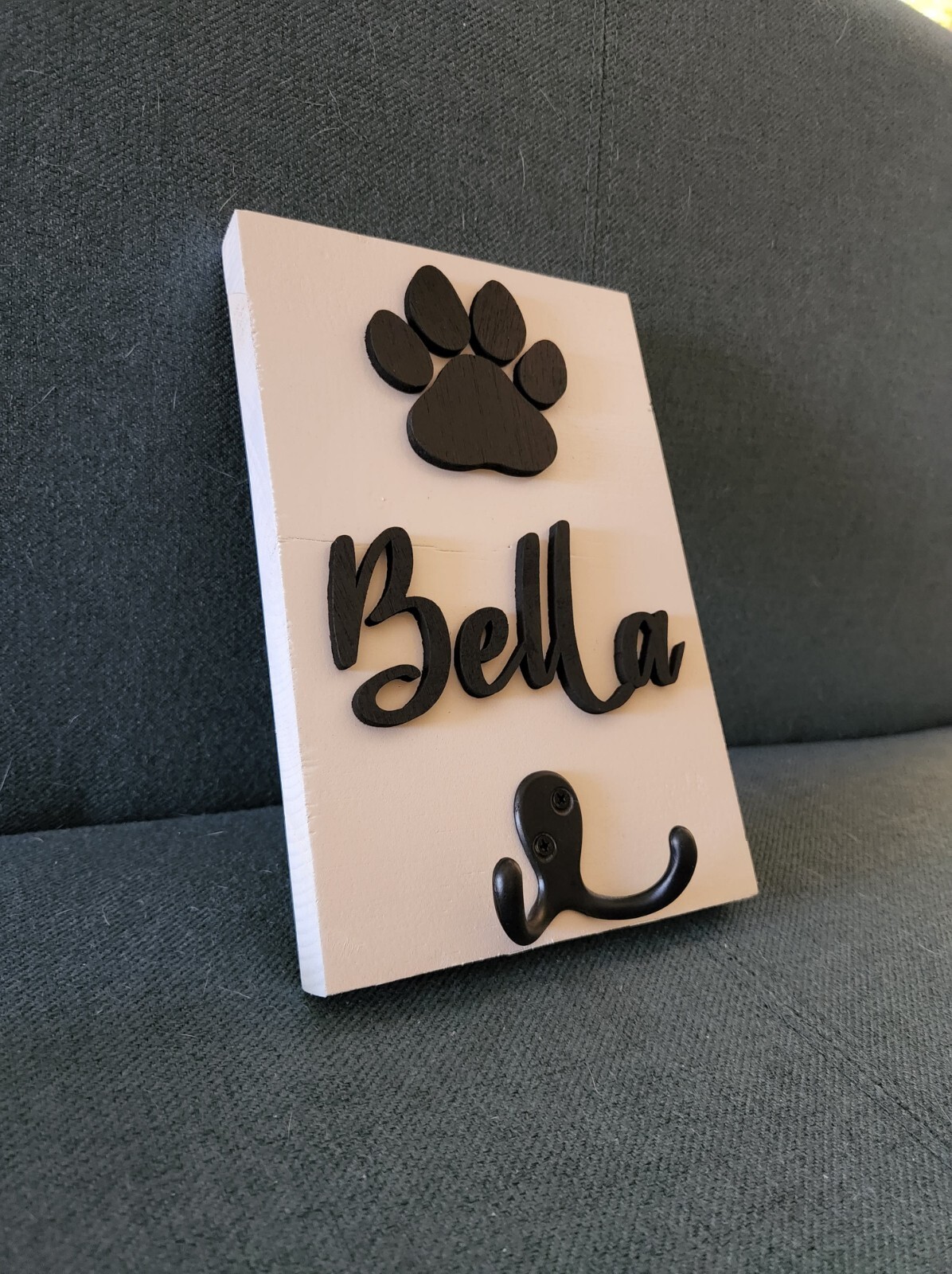 Personalized Dog Leash Holder Custom Name Pawprint Wall Hanging for Dog Leash