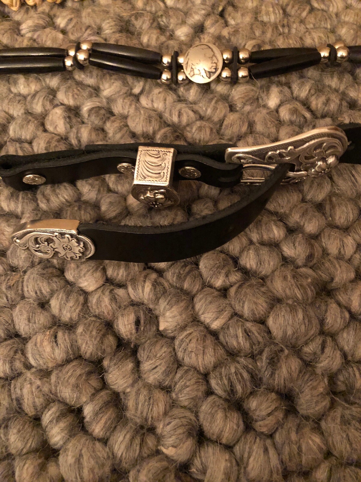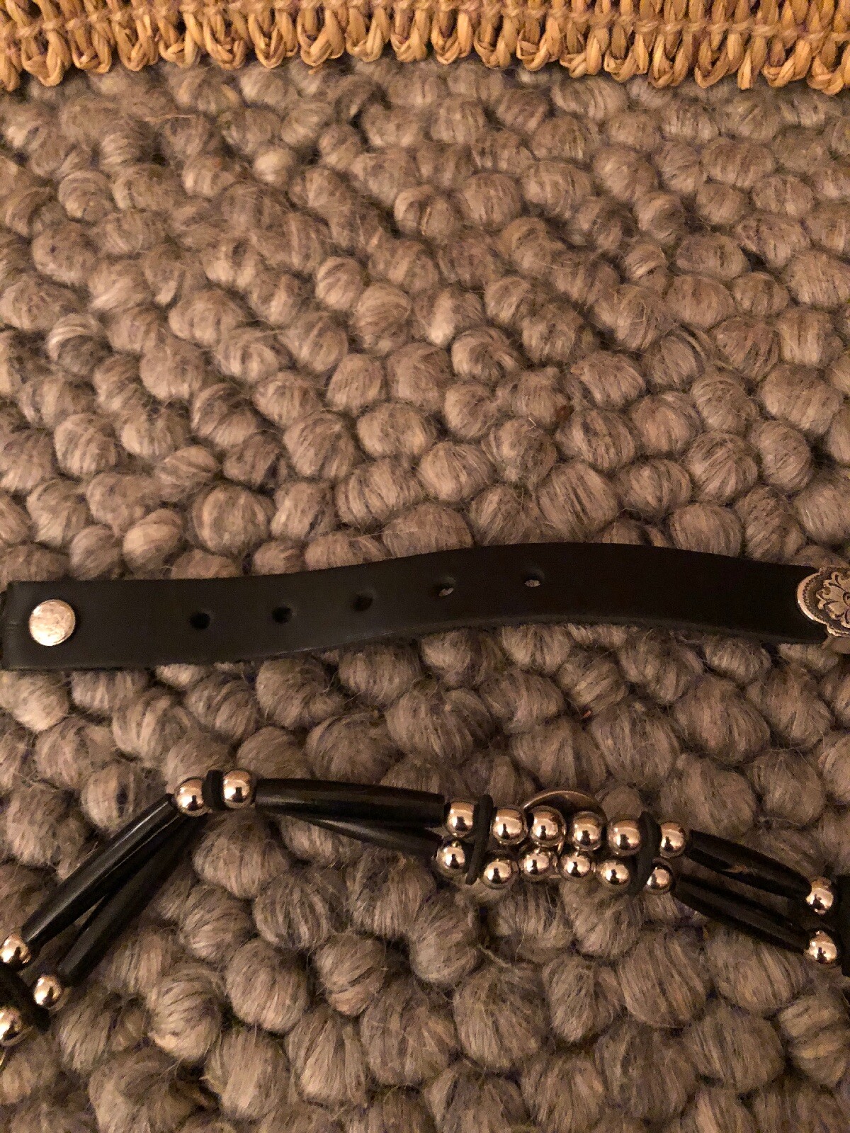 как выглядит Black Leather With Beads and Buffalo Nickel Design Adornment Women s Belt фото
