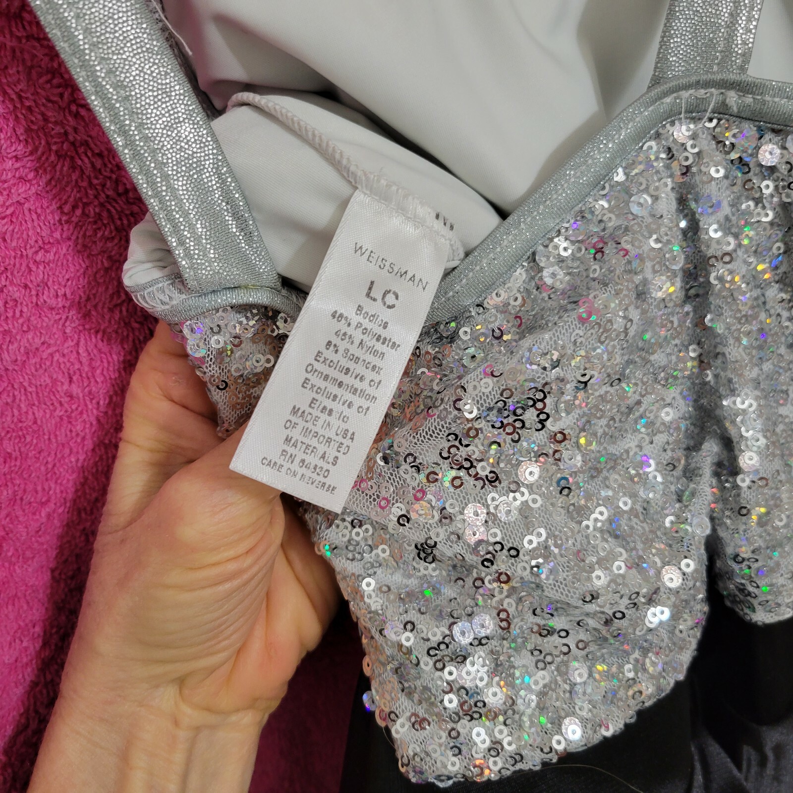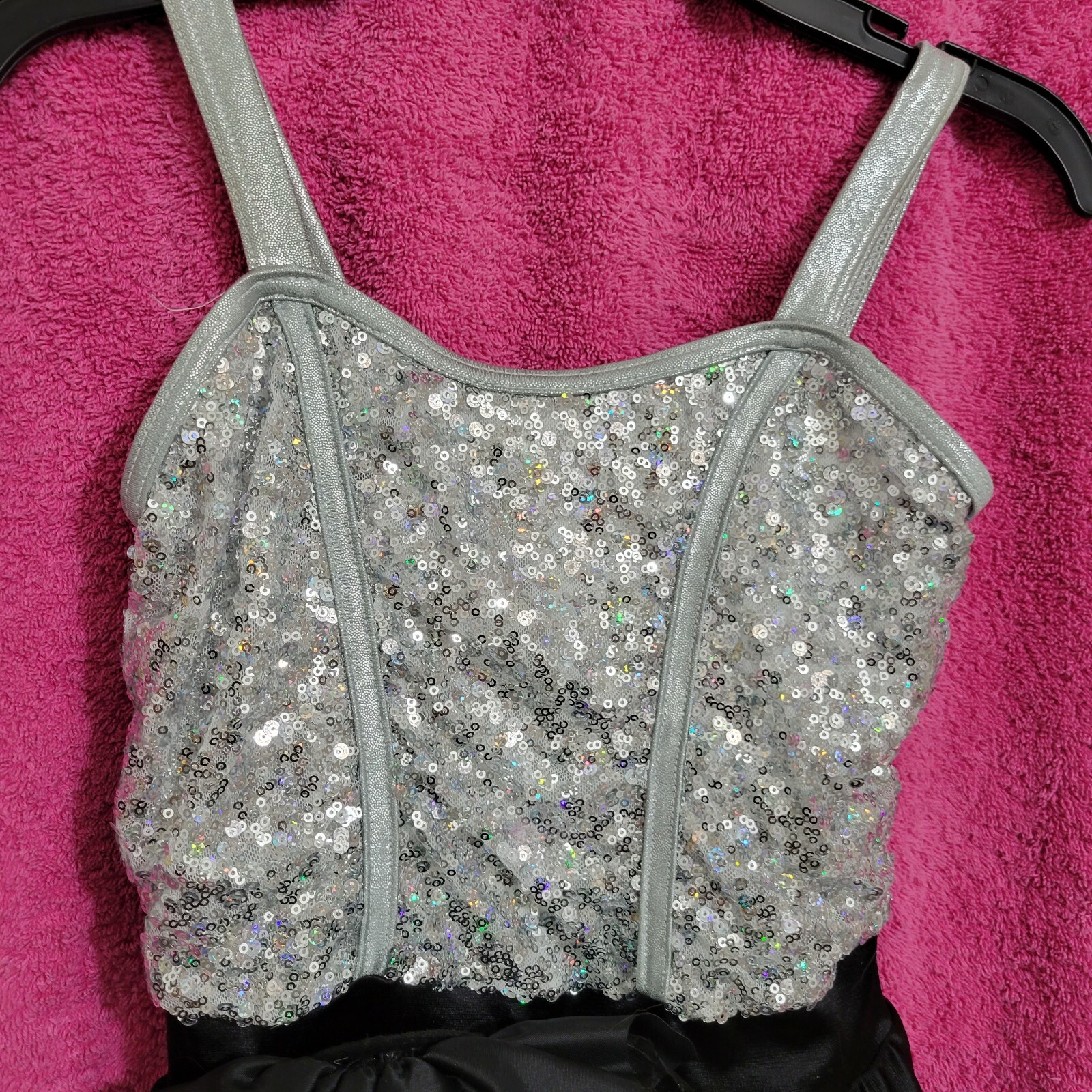 как выглядит Weissman Costume Dance Skate Recital LC Child 14 black silver shimmering sequins фото