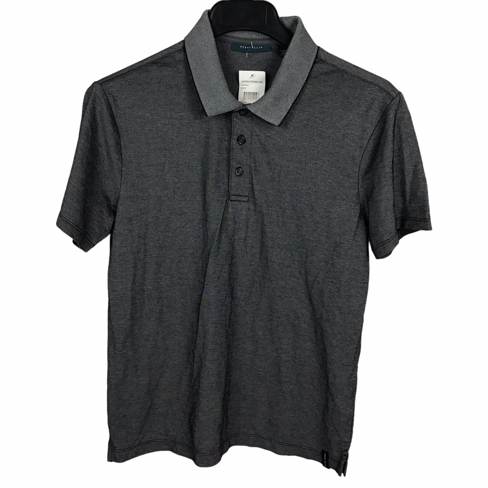 Perry Ellis Short Sleeve 3 Button Slub Polo Shirt Heathered Black Men's Small S