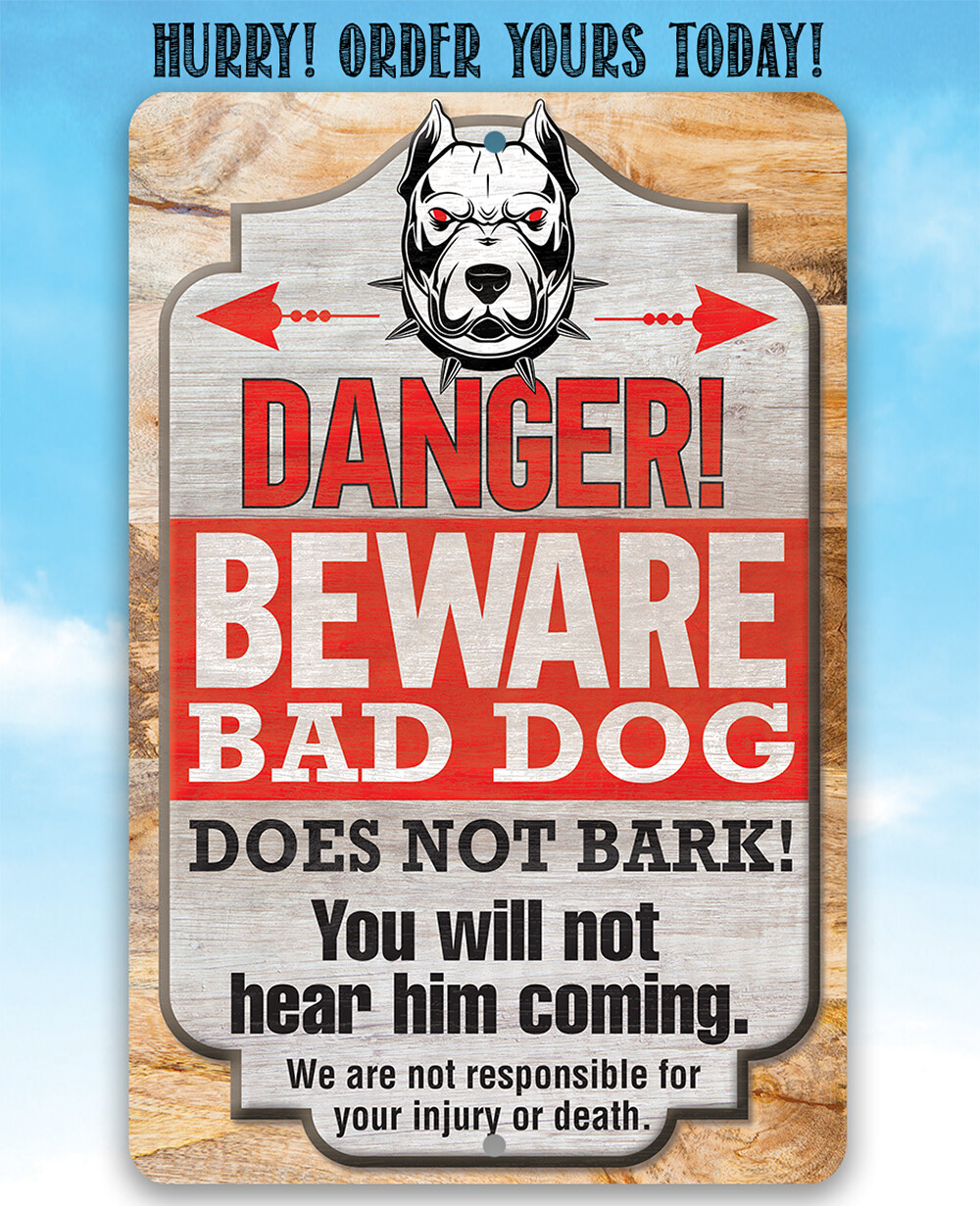 Metal Sign - Danger Beware Bad Dog, Does Not Bark - Durable Metal Sign - Decor