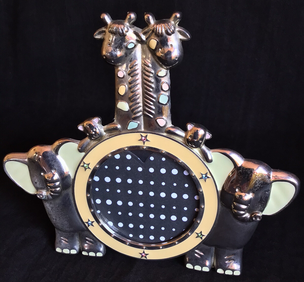 Vintage PHOTO Frame Silver Plated TWIN Elephant Giraffe Bear NURSERY Room Decor