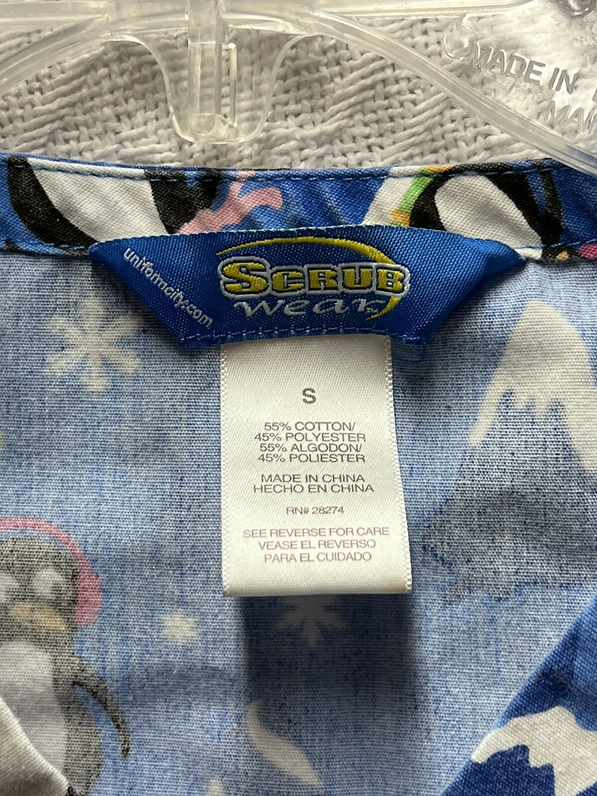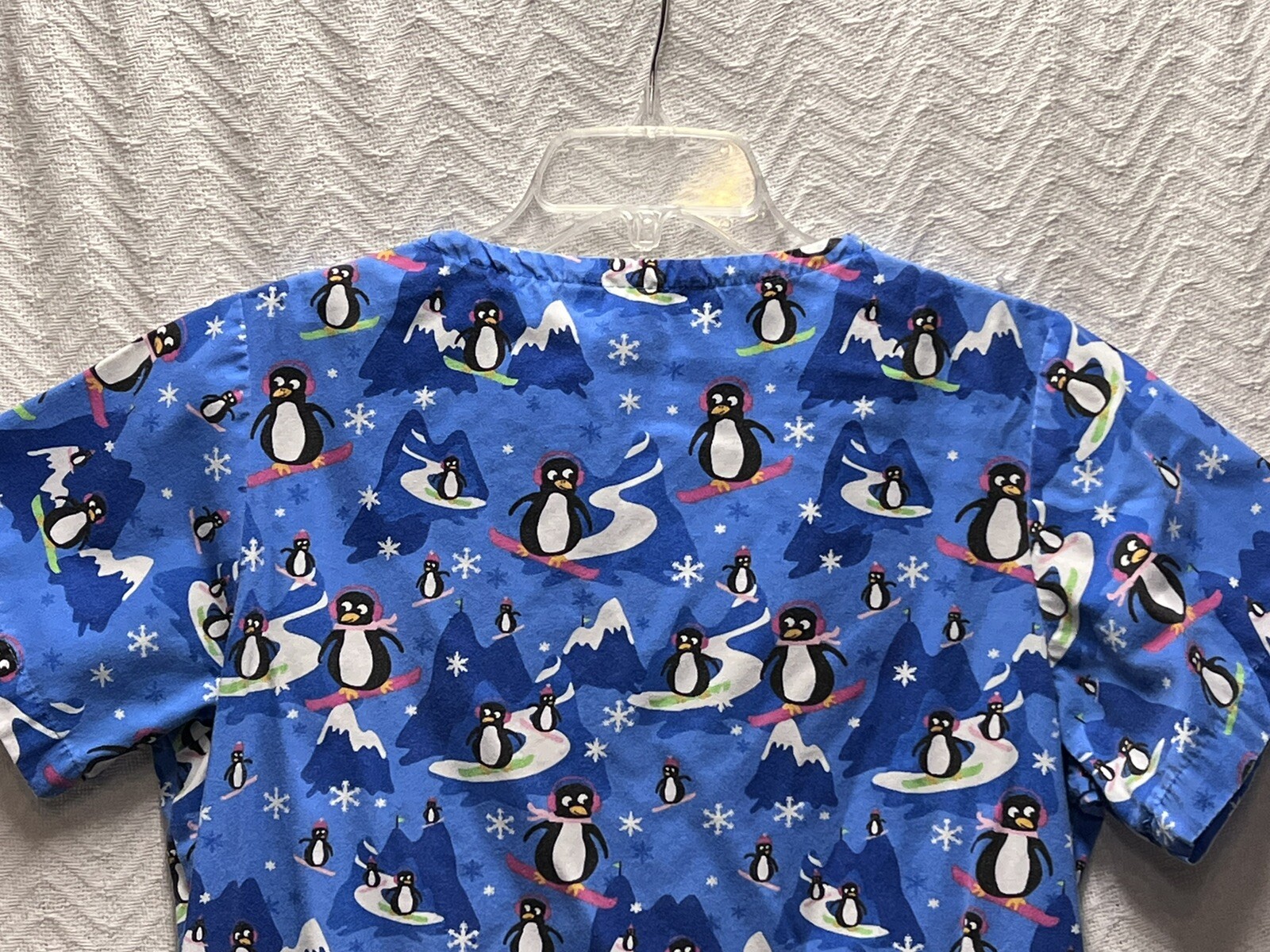 Scrub Wear Penguin Pattern Size Small Multicolored Scrub Top
