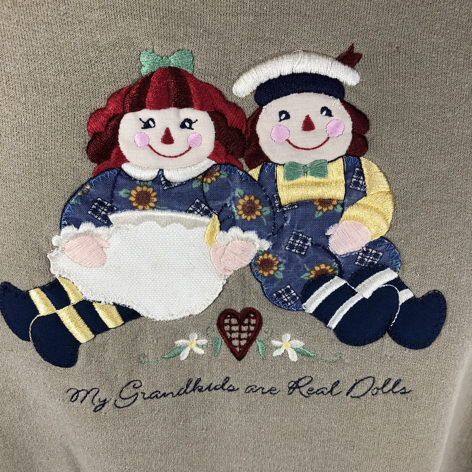 Vintage My Grandkids Are Real Dolls Collared Sweatshirt Morning Sun Grandma L