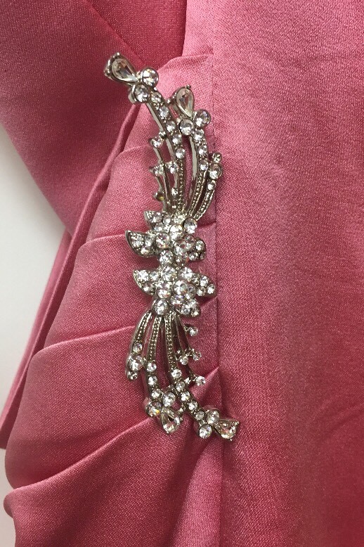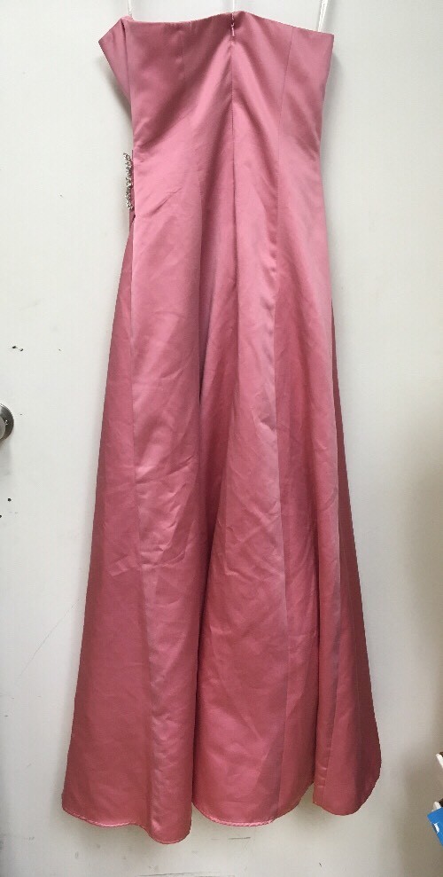 Davids Bridal Satin Gown with Side Drape Brooch Size 2 Rose Pink 8567 Strapless