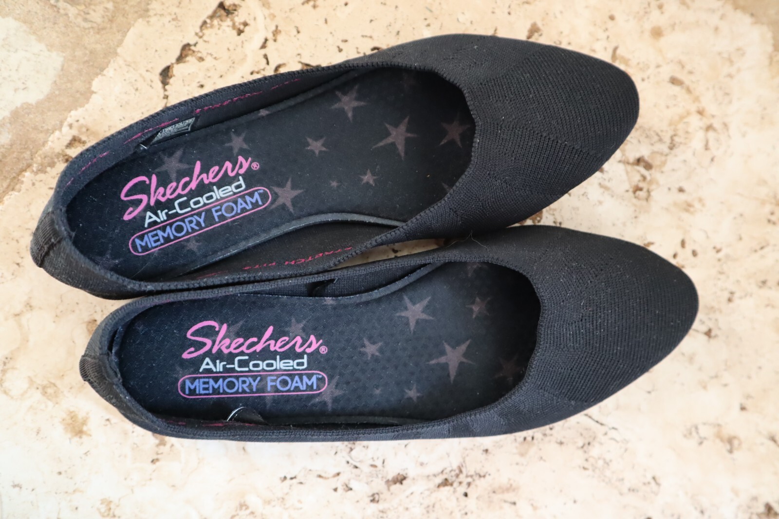 New Black Knit Textile SKECHERS Cleo Air Cooled Memory Foam Flats 6