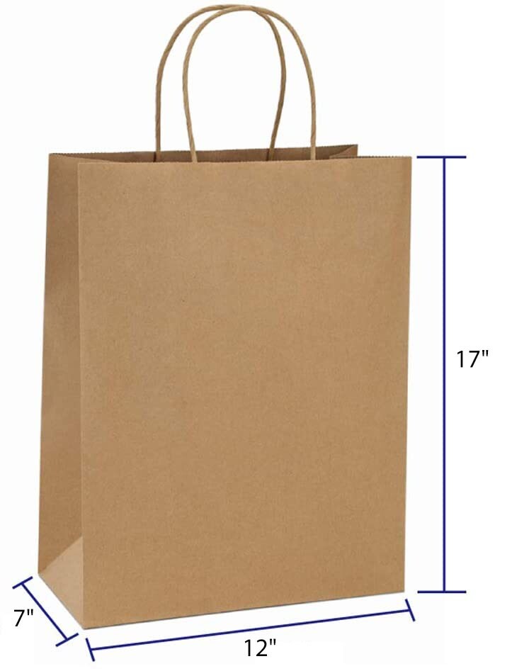 Kraft Paper Bags with Handles Shopping Bags, Retail Bags 12x7x17 Lot 100