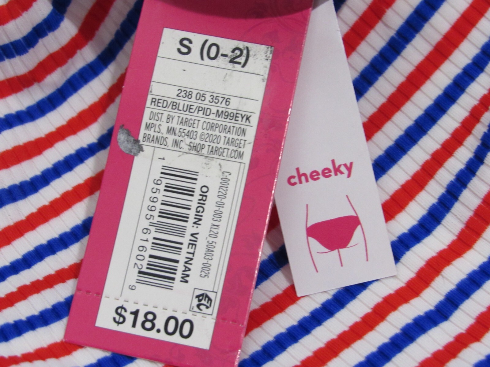 как выглядит Juniors Ribbed Cheeky Bikini Bottom - Xhilaration - Red/White/Blue Stripe Small фото