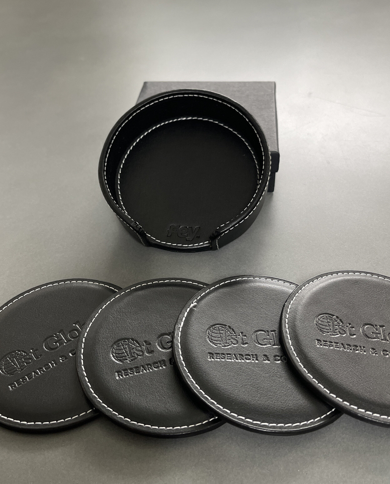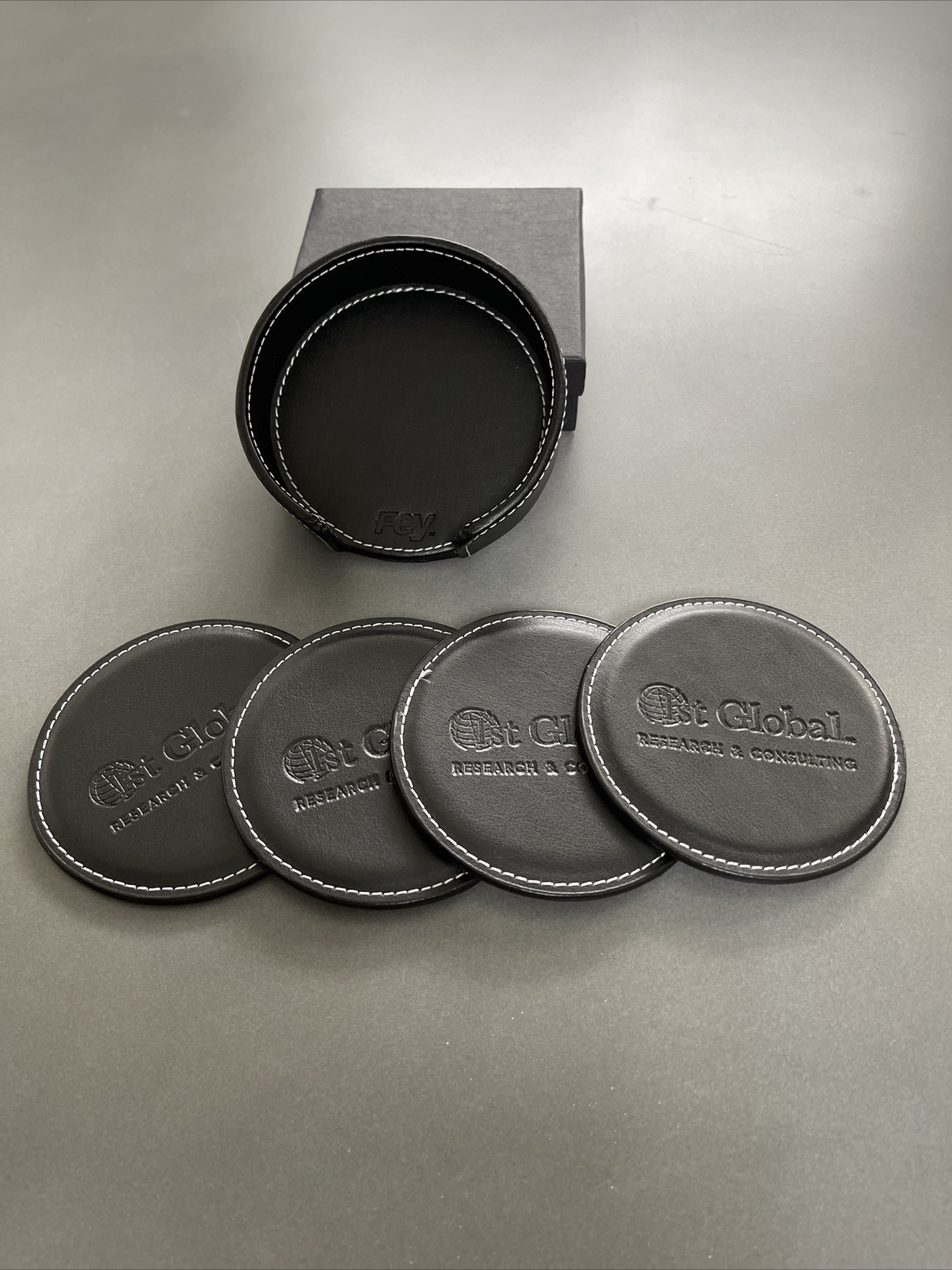 как выглядит Bonded Leather Coaster Set With Holder фото