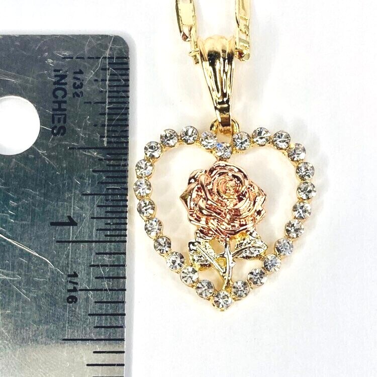 как выглядит 14k Gold Plated Heart White Cz Pendant Necklace With Chain 20" ORO Lam. 077 фото