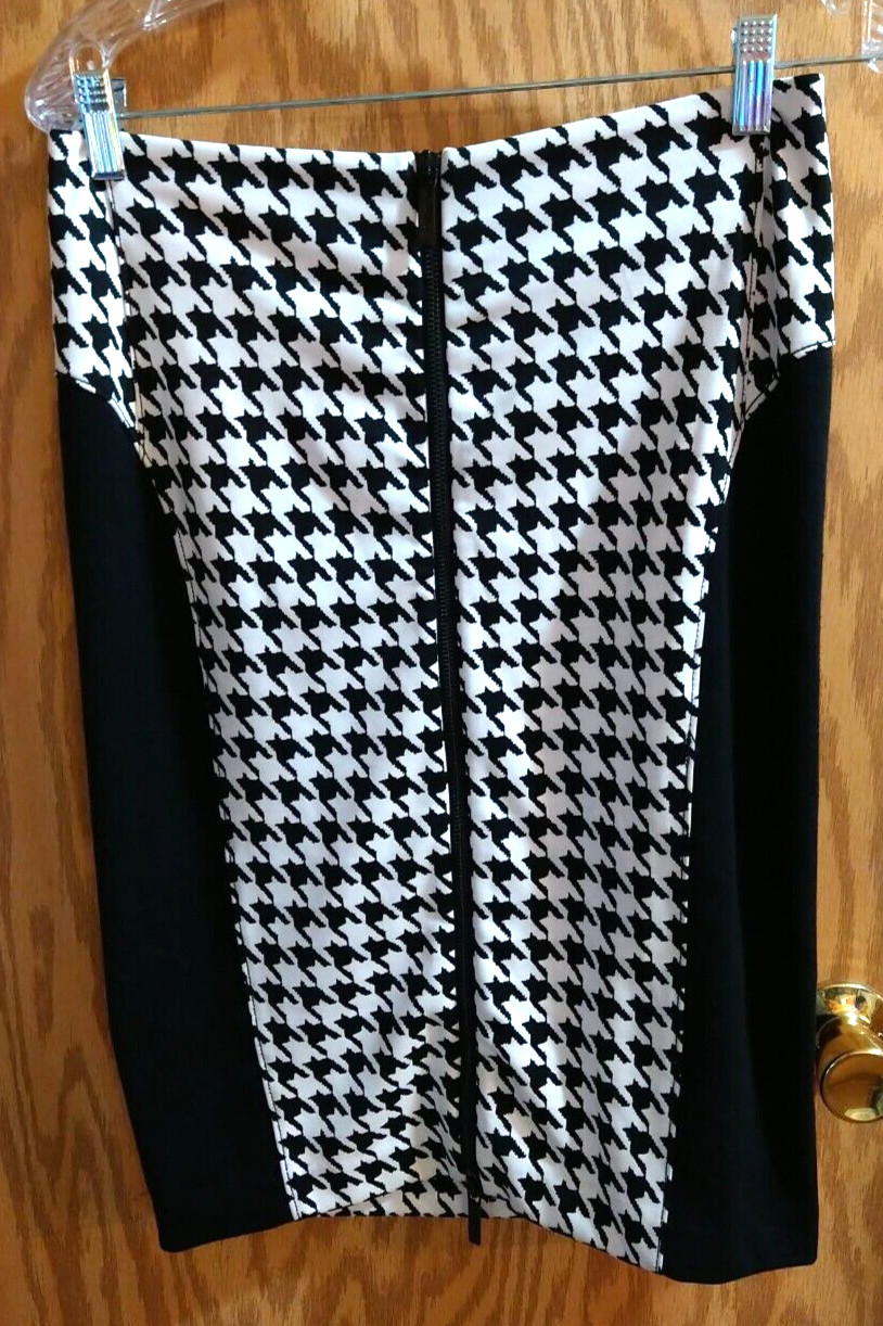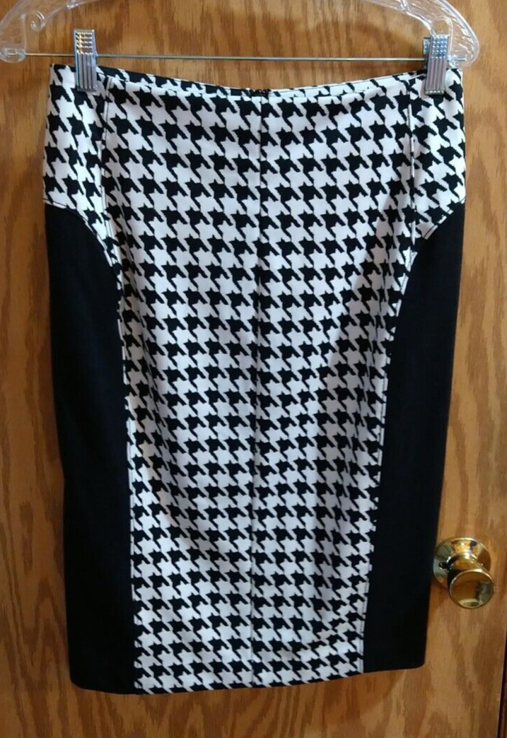 Michael Michael Kors Womens Black White Houndstooth Zipper Front Pencil Skirt 8