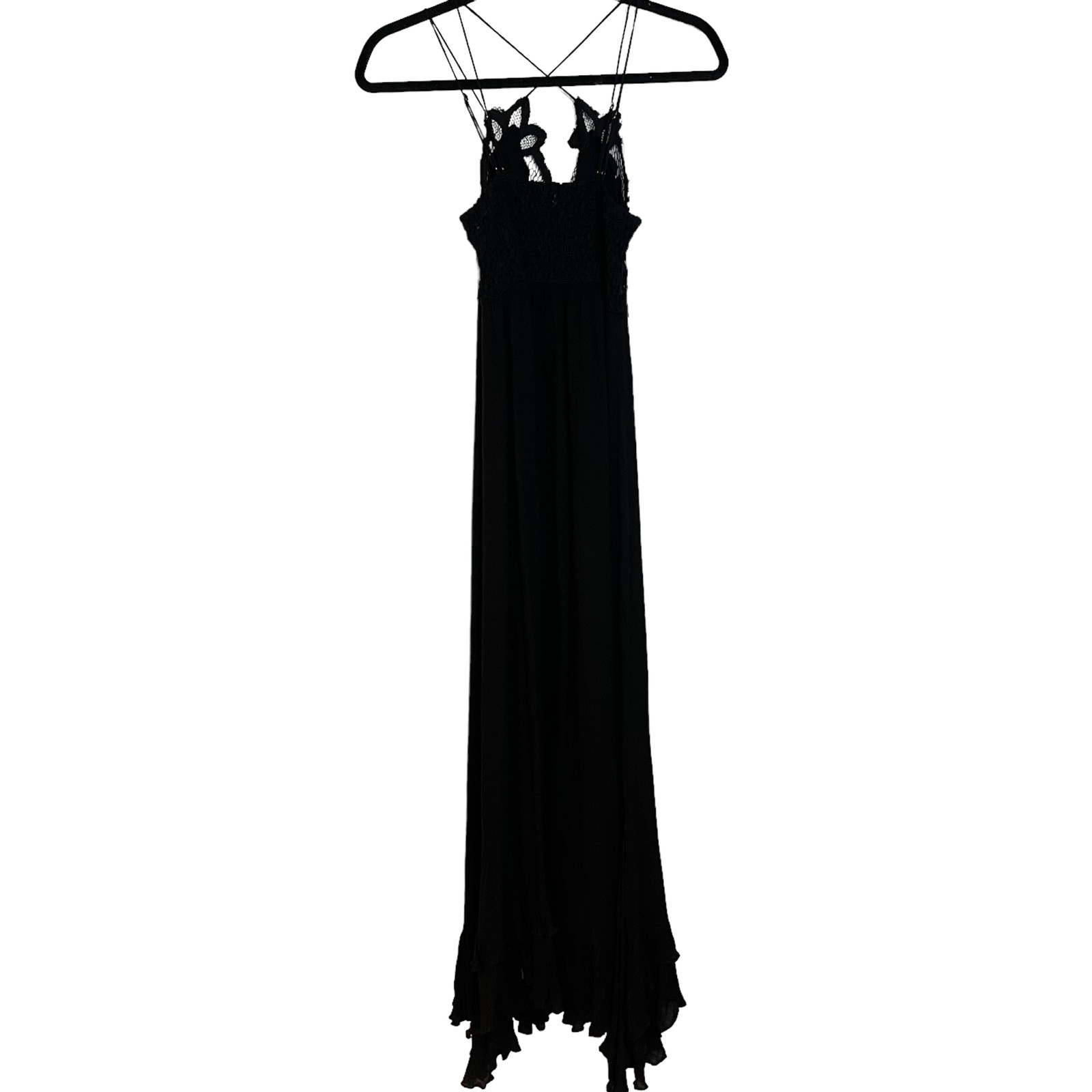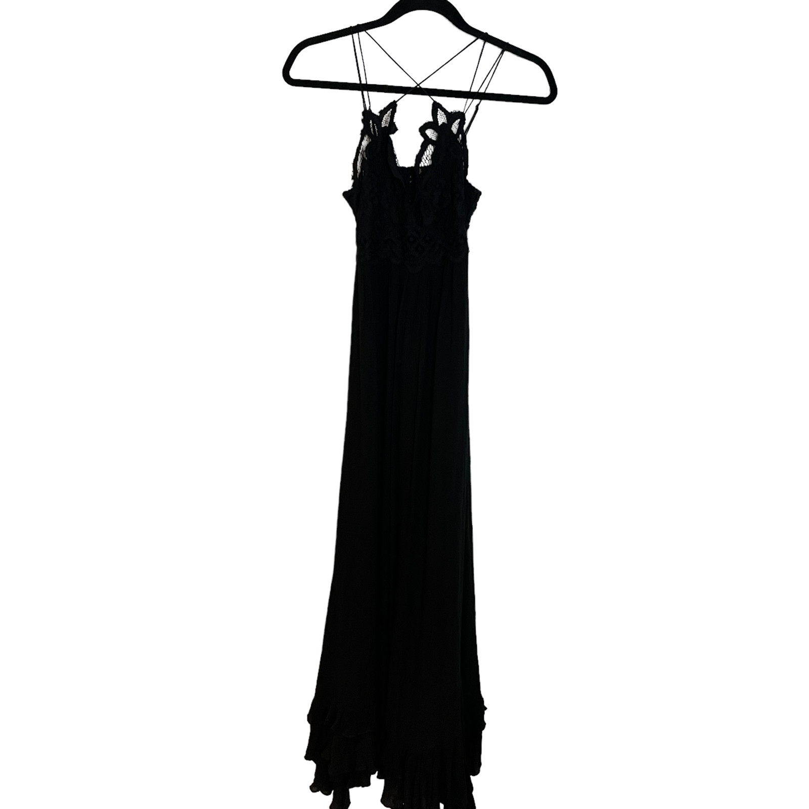 New Free People Floral Adella Maxi Slip Dress Lace Ruffle Hem Black Size XS