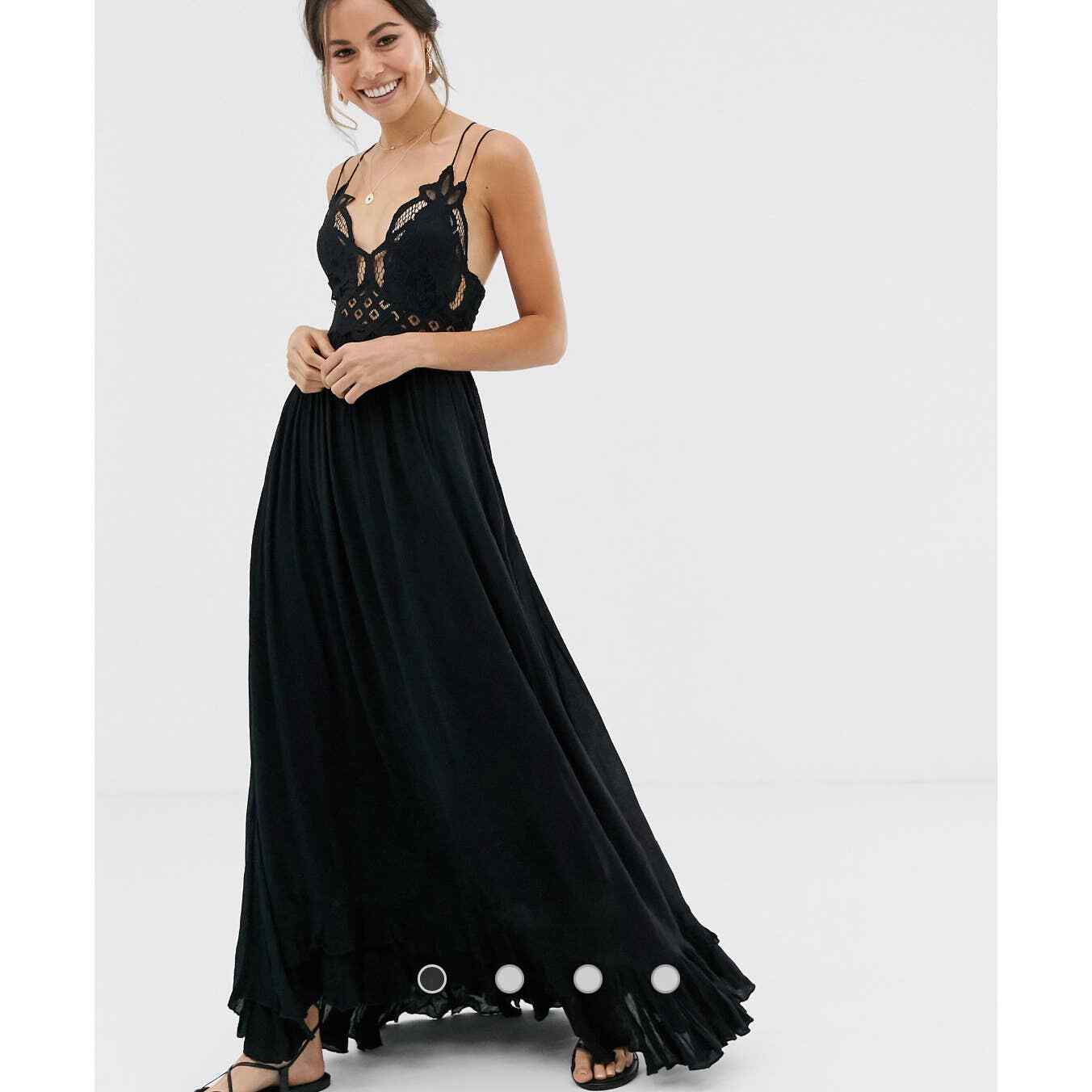 как выглядит New Free People Floral Adella Maxi Slip Dress Lace Ruffle Hem Black Size XS фото