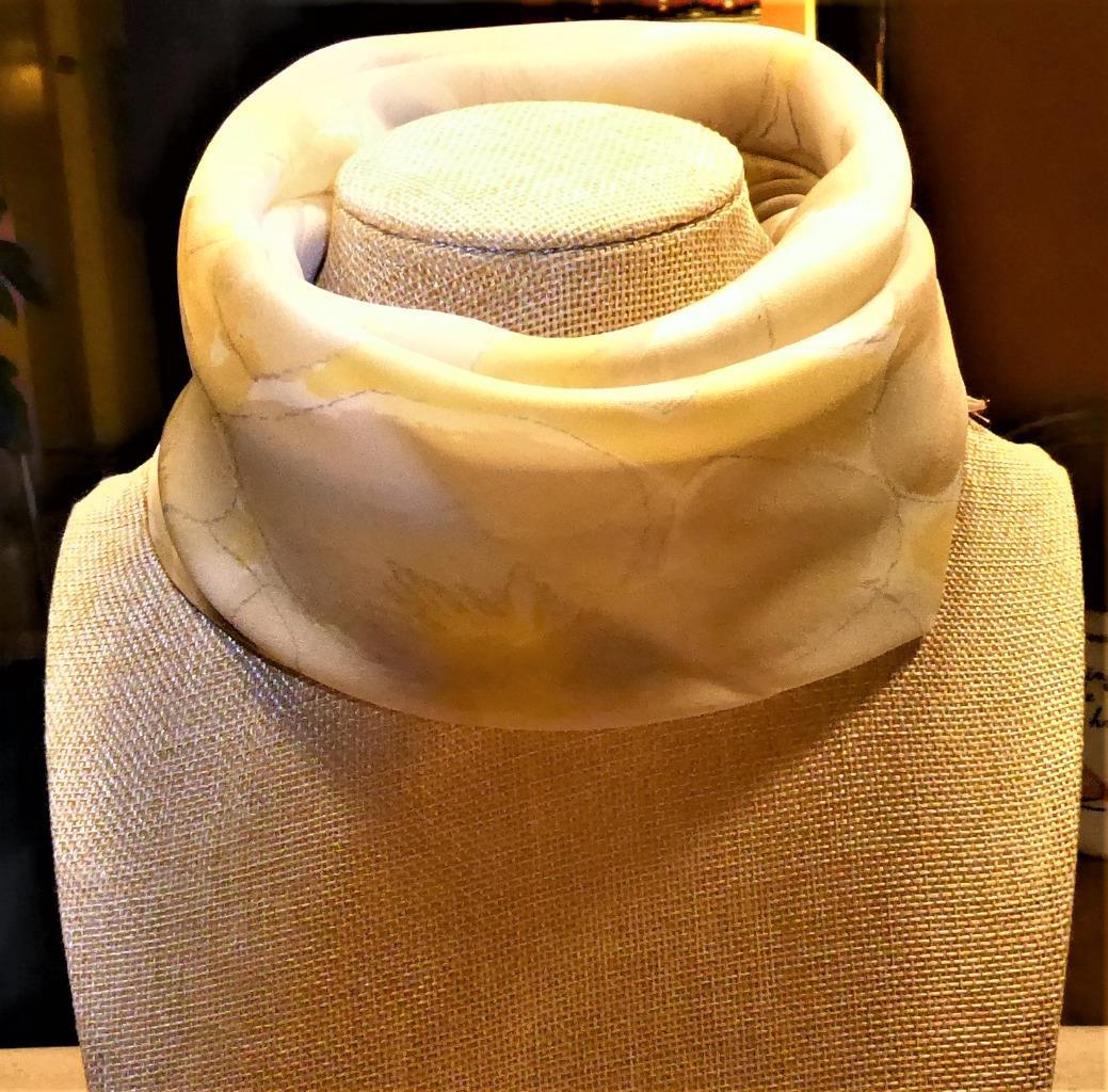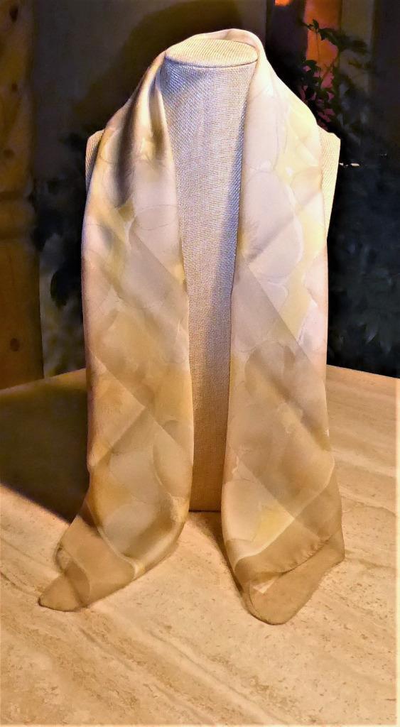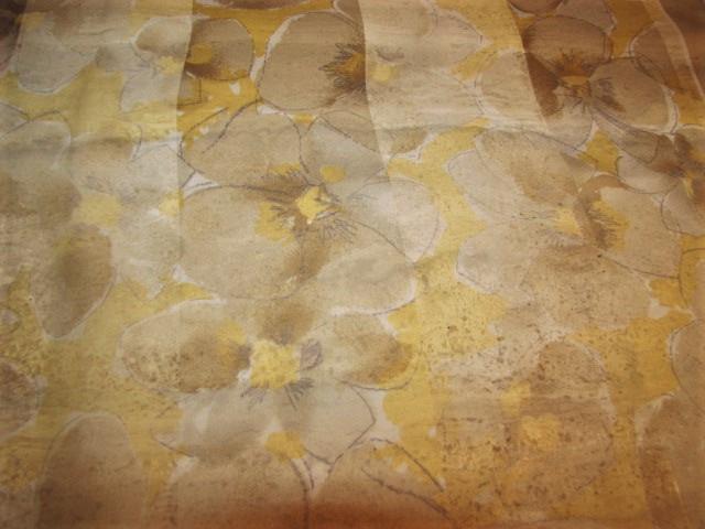 Square scarf floral champagne gray beige yellow; semi sheer 30x31 inches