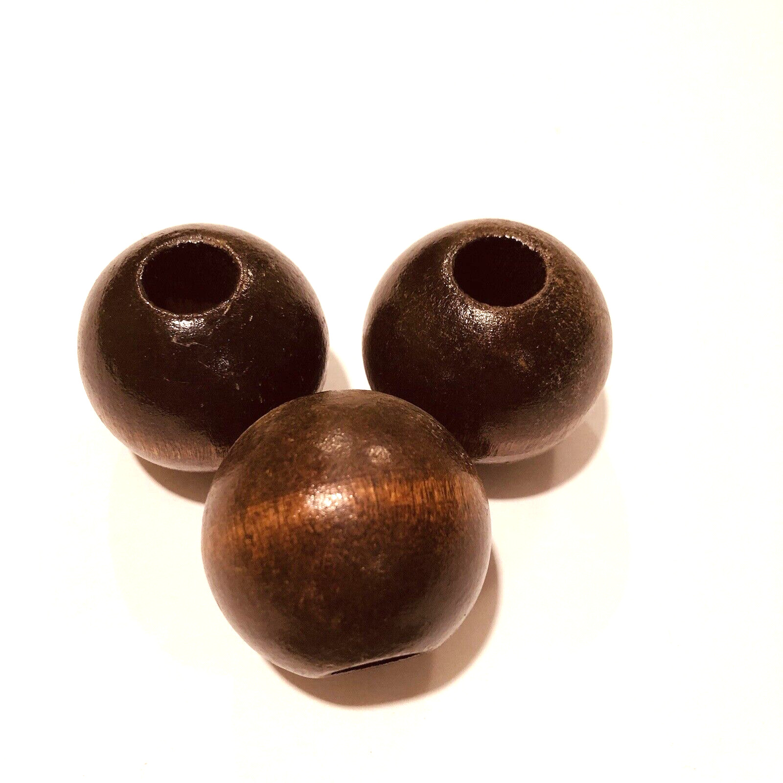 VTG 1970s Brown Wood Macrame Round Craft Beads Retro MCM Boho 1.5 In Lot of 3
