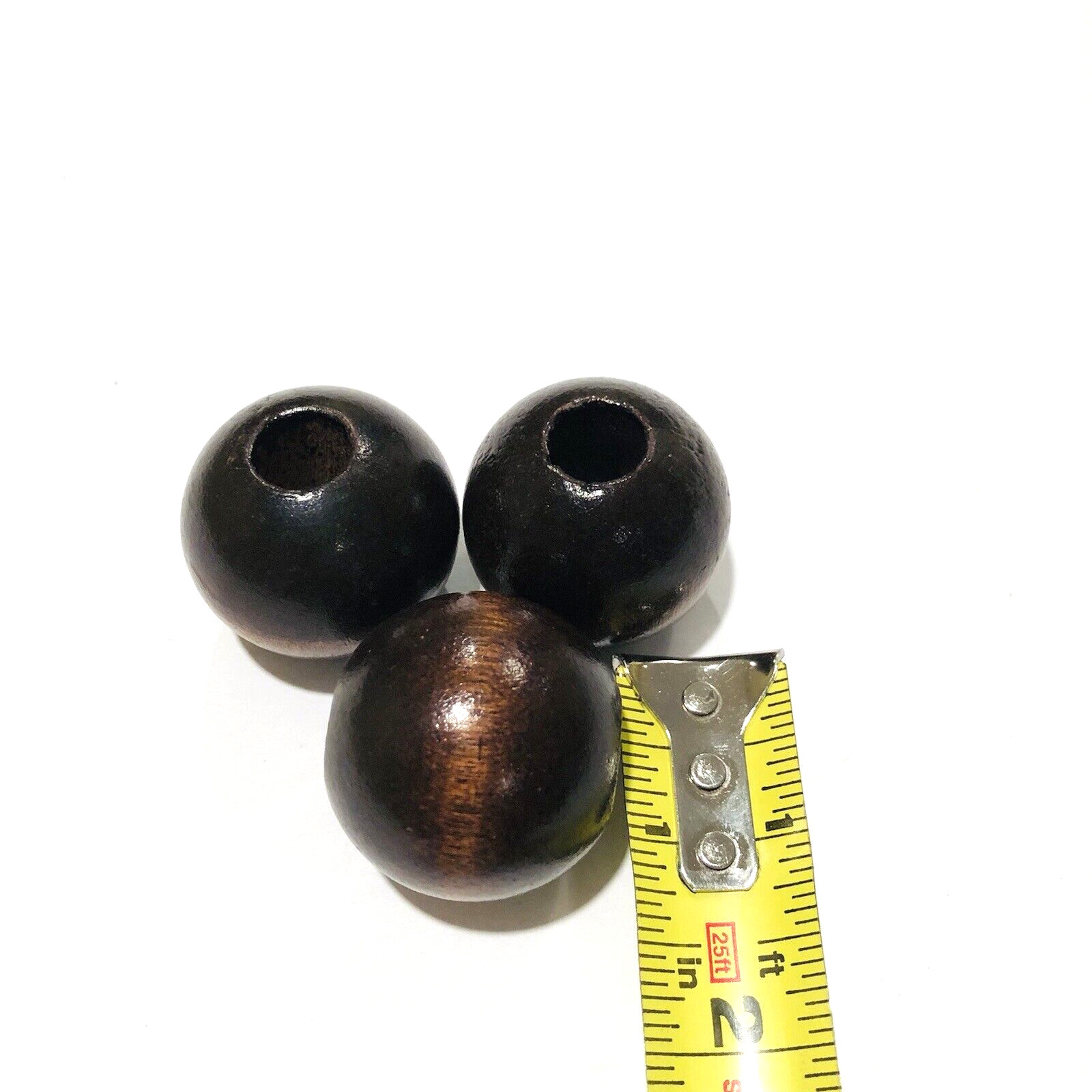 VTG 1970s Brown Round Wood Macrame Craft Beads Retro MCM Boho 1.5 IN Lot of 3