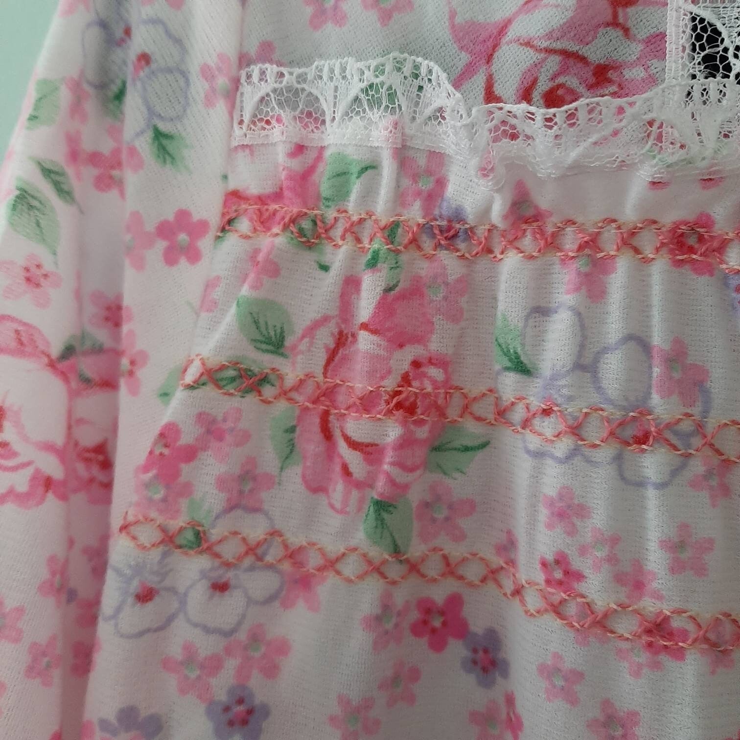 как выглядит Vtg Girls Flannelette Pink Toile Floral PJs Nightgown Candlesticks Girls 10/12 фото