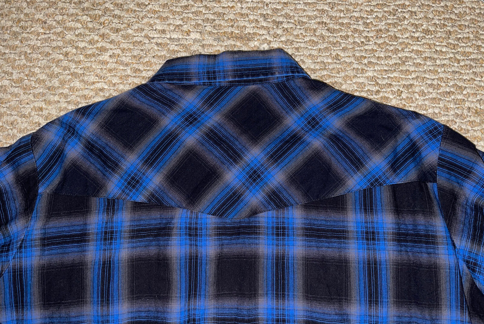 как выглядит Ely Cattleman Vtg Western Blue Black Plaid Pearl Snap Cotton Shirt XL FREE SHIP фото
